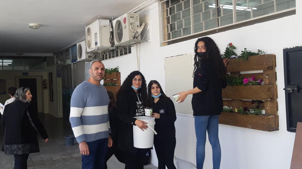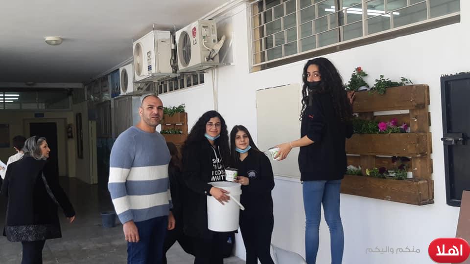 *أعمال طلاء وبناء أحواض خشبية ،زراعة الأحواض وتزيين المدرسة.