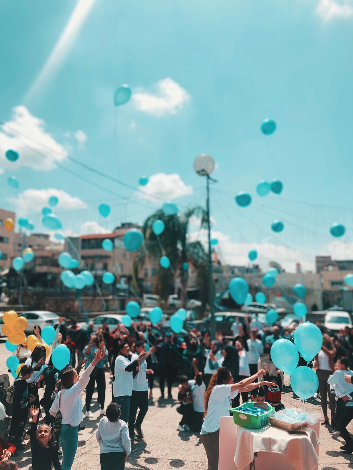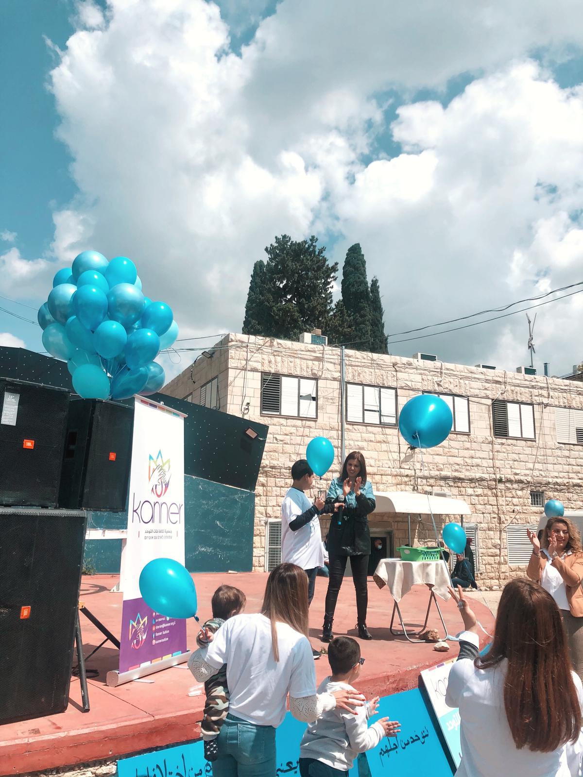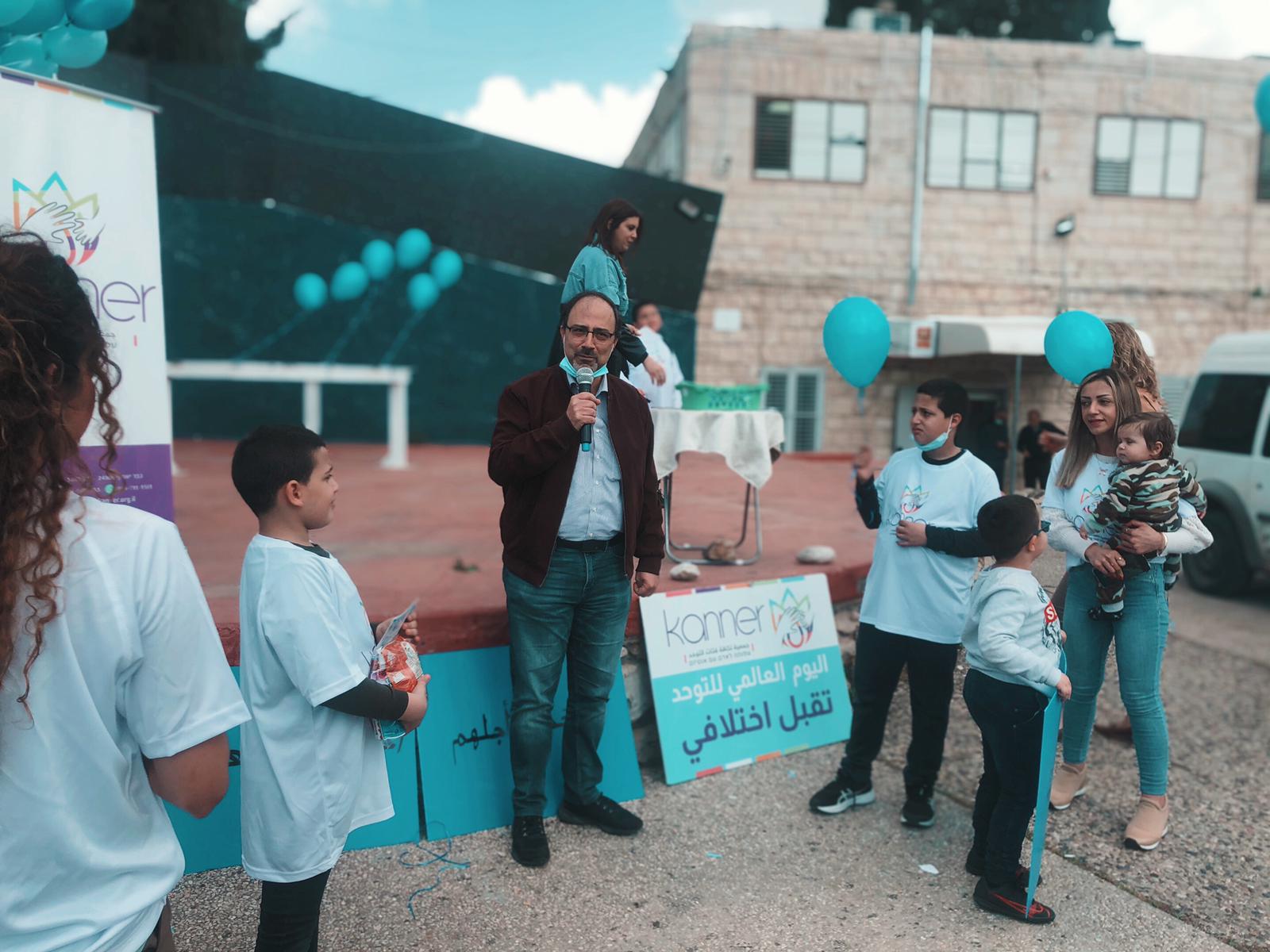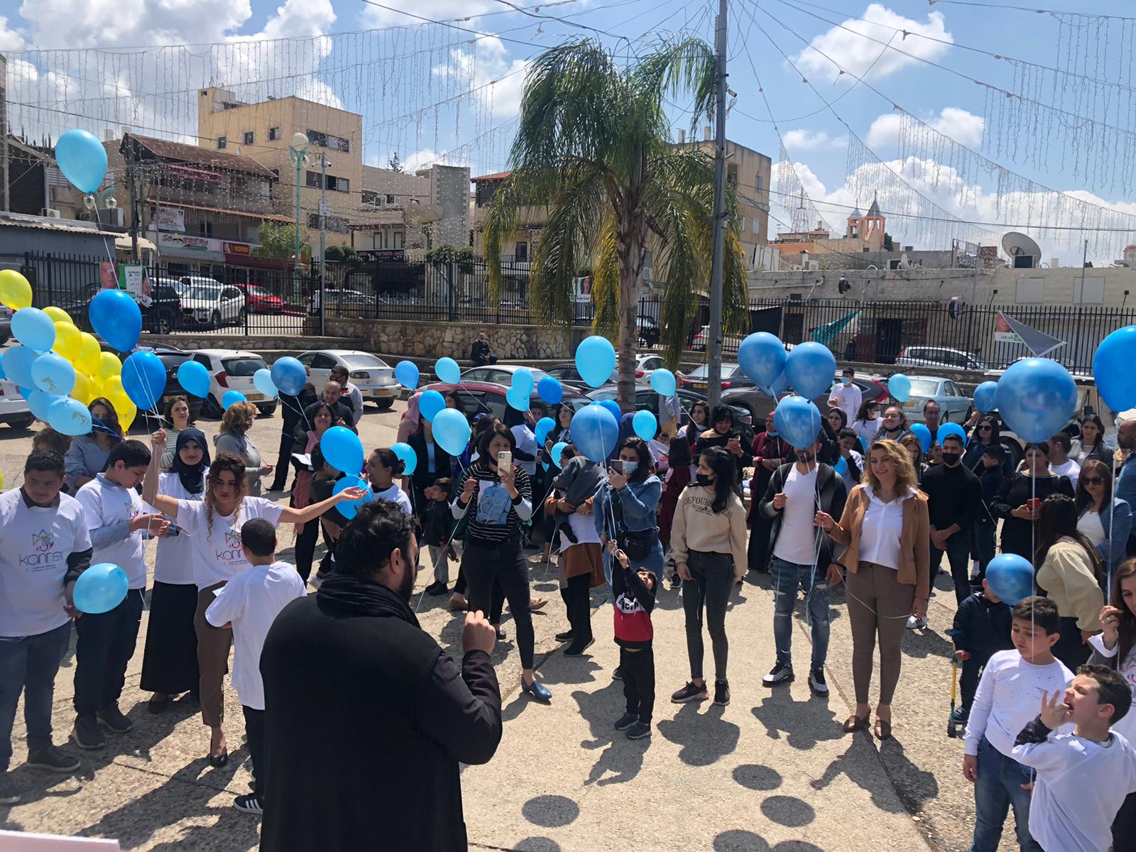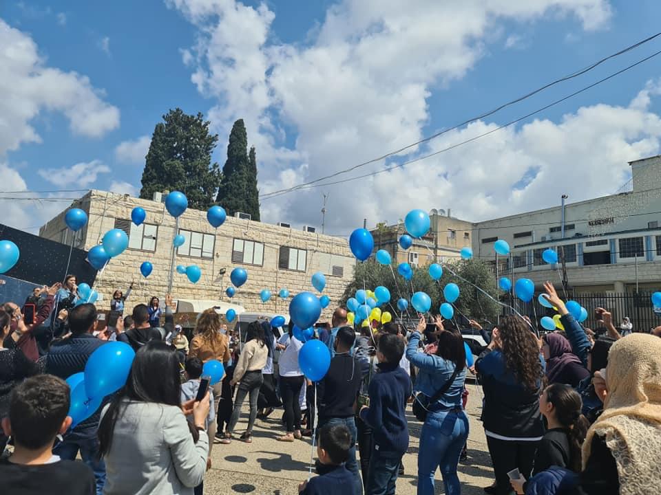 اهلا التوحد مش مرض ، التوحد هو تمييز بحاجه لدعم ،محبه ، تفهم واحتواء ، تقبل واحترام . التوحد عالم مليء بالتحديات وكمان إبداعات . كما ورحبت السيده شيرين فرح بالحضور الكريم الاهل والأطفال رئيس المجلس المحلي وقدس الأب فرح فرح والضيوف الكرام مشيرةً الى اهداف الجمعيه هي نشر الوعي في الوسط العربي لطيف التوحد وتسليط الضوء على اهميه التعامل والإحتواء والتقبل لأطفال التوحد . ودمجهن في البرامج التعليميه والتربويه والاجتماعيه كأي اطفال عاديين . وعبر السيد شادي شويري رئيس المجلس المحلي عن اهميه تقبل المجتمع لأطفال التوحد واحتوائهم بمحبه وشد على ايدي القيمين بالجمعيه والأهل . وبارك قدس الاب فرح فرح مساعي الجمعيه واهدافها . كما وعبر الطفل التوحدي زيد سنونو عن اهميه تقبل المجتمع له كطفل مميز . وبالنهايه اطلق الاطفال بالونات زرقاء اللون وهو لون اطفال التوحد الى السماء مطلقين امنياتهم بغدٍ أفضل وتقبل مجتمعي واحتواء