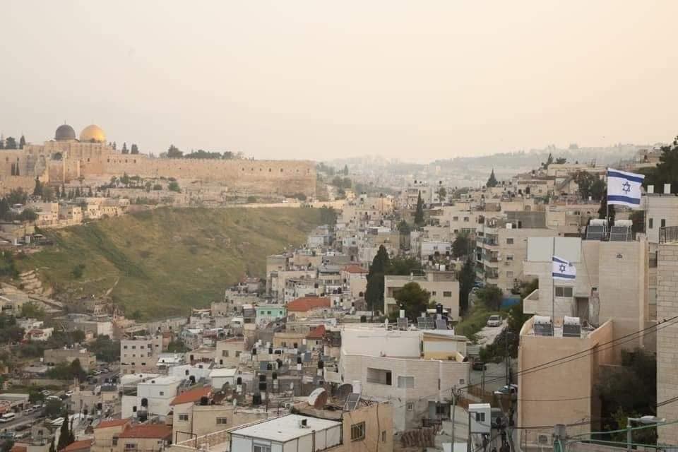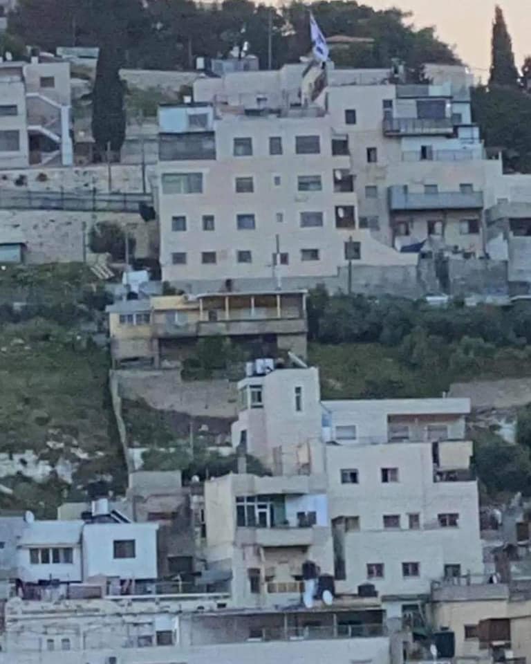 والأعلام الإسرائيلية مرفوعةٌ فوق البنايات...