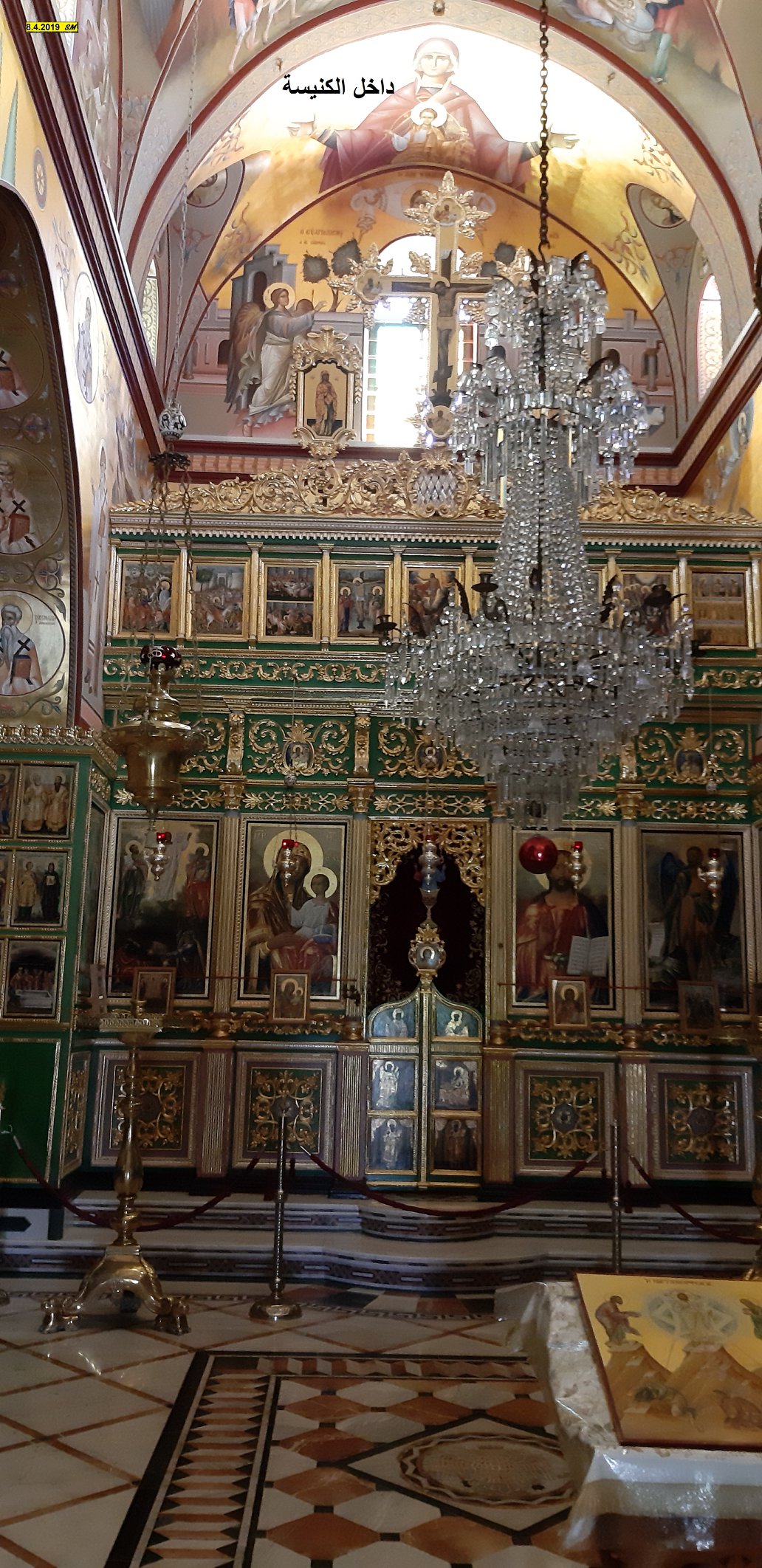 في الجزء العلوي من الكنيسة، وفوق المذبح، لوحة فسيفسائية تصور التجلي. في 6 من آب في كل عام يحتفل بعيد التجلي