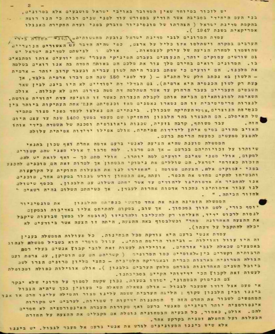 ينتقد الحكومة التي تعتبر الموارنة والدروز عرباً، مما يزيد من نسبة العرب في البلاد.