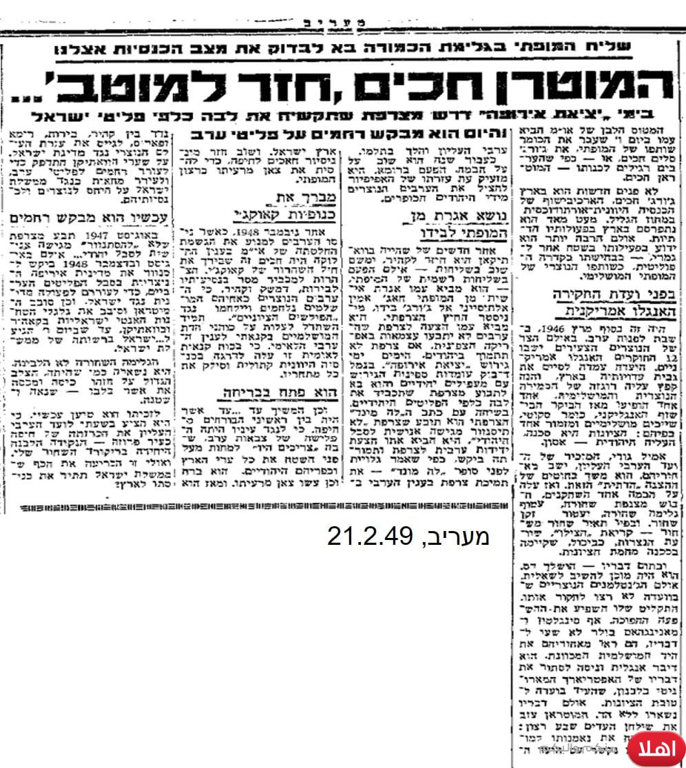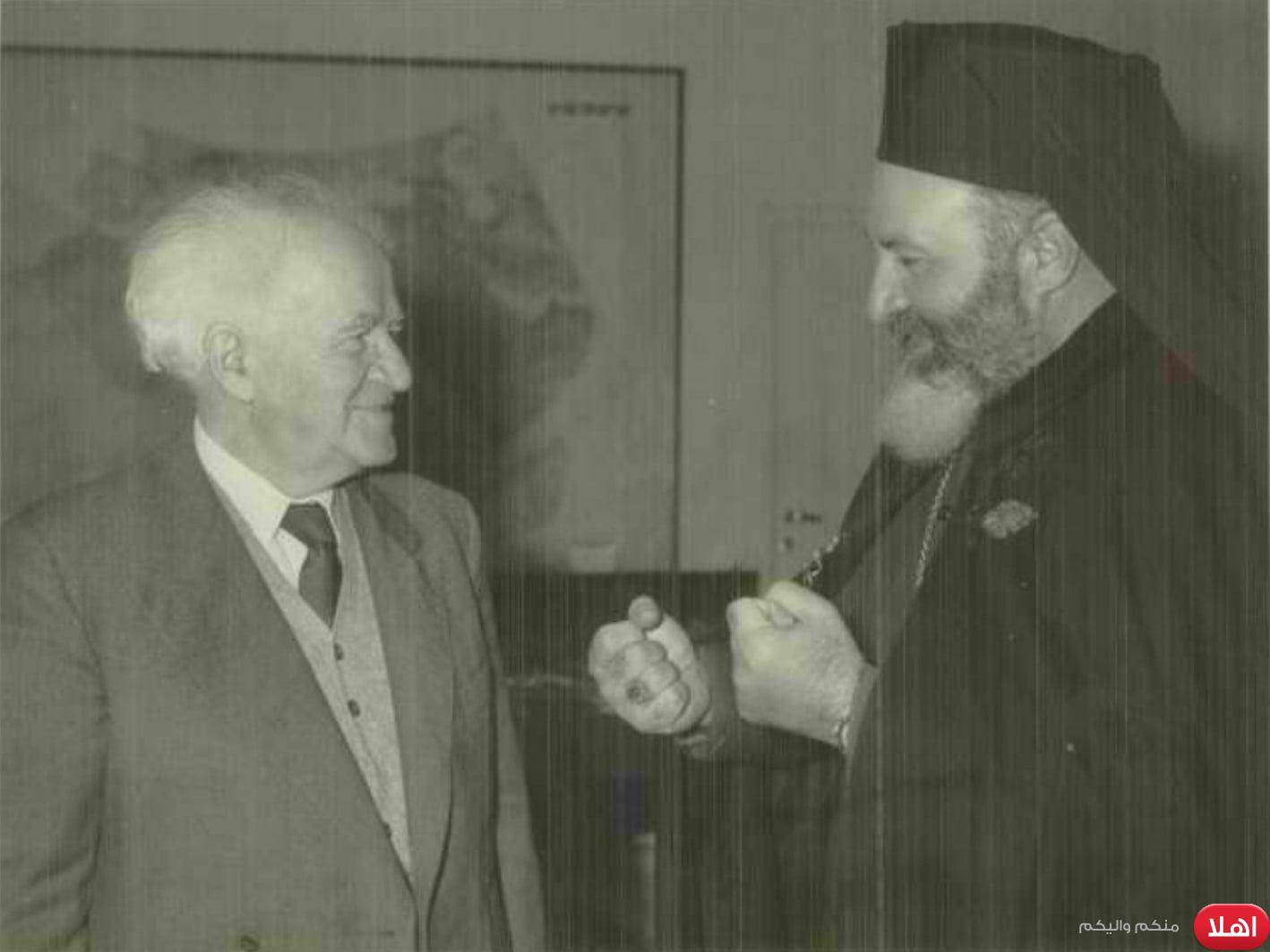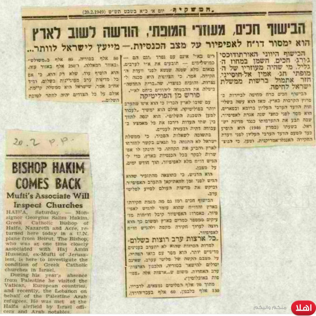 صحيفة هعولام هازه (3.12.53) تنقل اجتماع المطران مع شخصيات عربية لتأسيس حزب ينافس الشيوعية، شارك بالاجتماع محمد نمر هواري (رئيس نجادة سابقاً) والقاضي طاهر الطبري (قاضي المحكمة الشرعية في الناصرة).