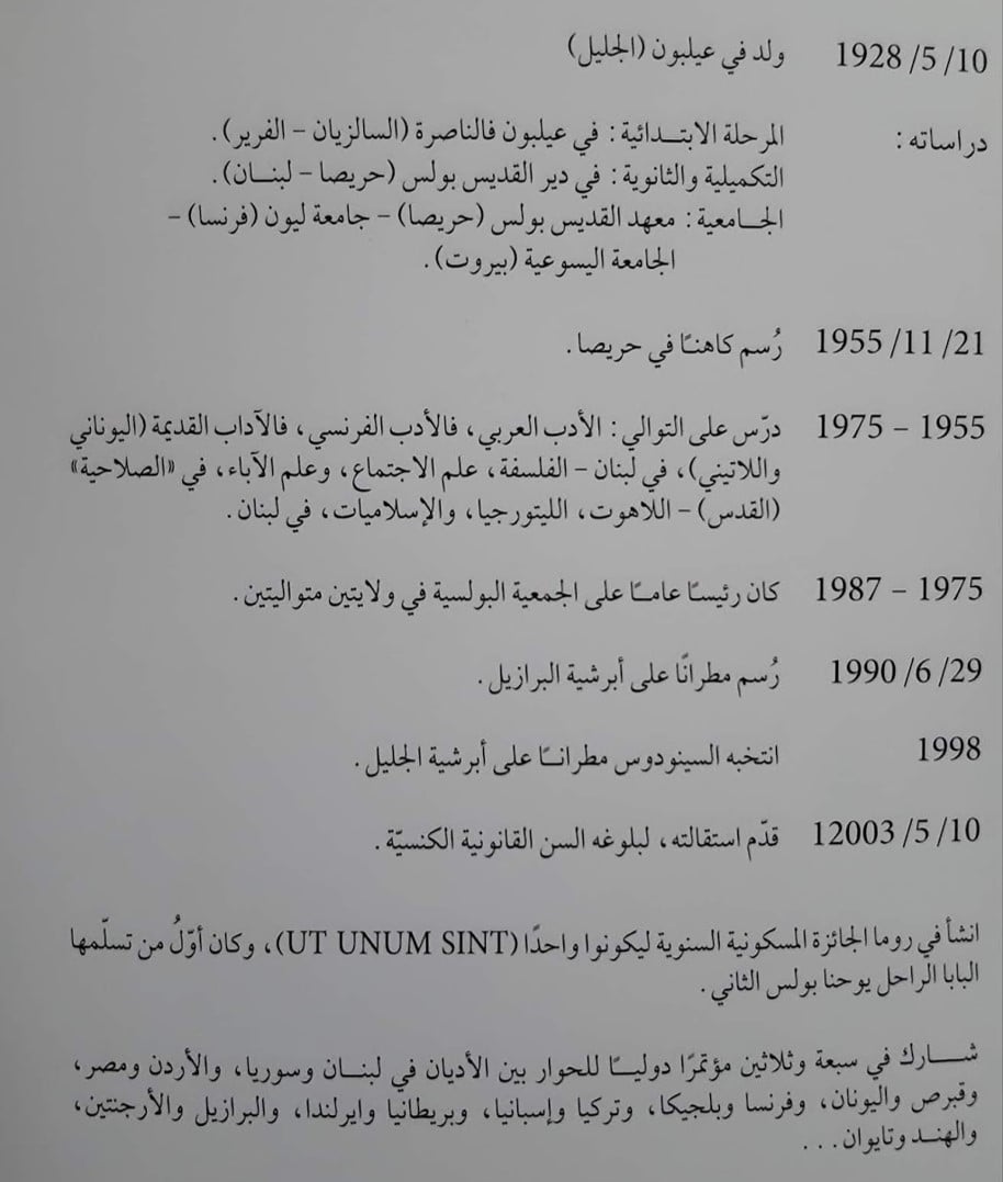 يُذكر، أن سيادة الأب بطرس من مواليد عيلبون عام 10.5.1928، غادر البلاد قبل قيام الدولة طلباً للعلم، ومُنع من العودة. عُرف بالاستقامة والوطنية، بالنزاهة وبحبه للناس.