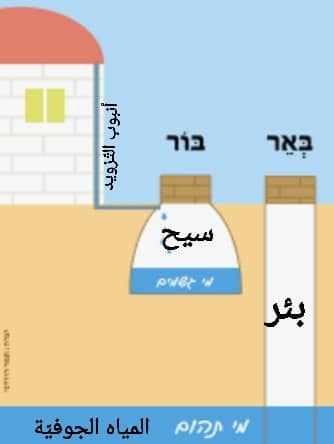 اهلا - فوزي حنا حفر الإنسان نوعين من الآبار للحصول على الماء العذب، النّوع الأوّل يعتمد على المياه الجوفيّة وهو البئر، والثاني يعتمد على مياه الأمطار وهو السّيح.