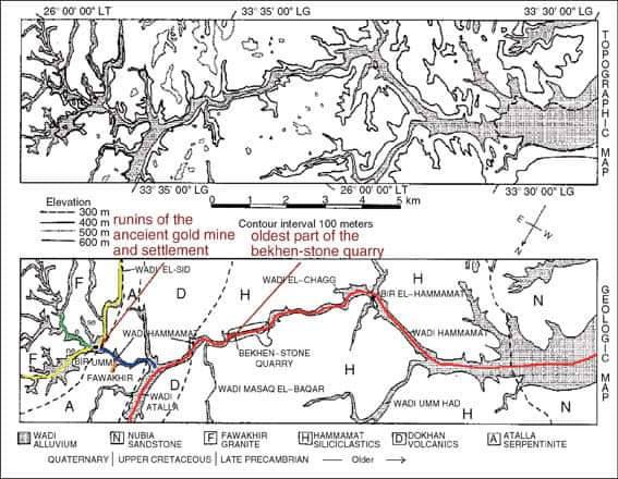 وادي الحمامات، كان نهر قديم جداً يصل من «قفط» إلى «قنا»، حتى البحر الأحمر، ولكن عندما جفّ النهر، ظهر أسفله انواع كثيرة مختلفة من الصخور المميزة، وما يقارب من ١٥٠ منجم ذهب مختلفين، ولأجل هذا كان الملك يريد أن يمر هناك لجلب كمية من الذهب.