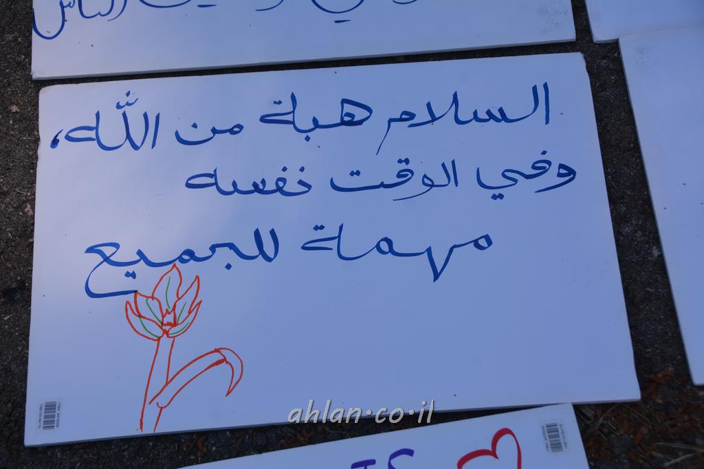 في خطوة جريئة وبالتزامن مع الاوضاع الراهنة في البلاد من عنف وقتل ودمار وتقطيع اوصال المجتمعات التي تعيش جميعها في هذه البلاد ارتأى المجلس المحلي برئاسة معضاد سعد وجميع القوى العاملة في المجلس المحلي الوصول الى مفرق شارع 89 الى منطقة تيفن برفع الشعارات المطالبه بالسلام والمحبة بين الجميع وتوزيع الحلويات على المارة السائقين من جميع الاتجاهات عسى ان يساهم هذا في رفع المعنويات من اجل الوصول الى بر الامان بين جميع الطوائف والمجتمعات في البلاد تحت راية السلام