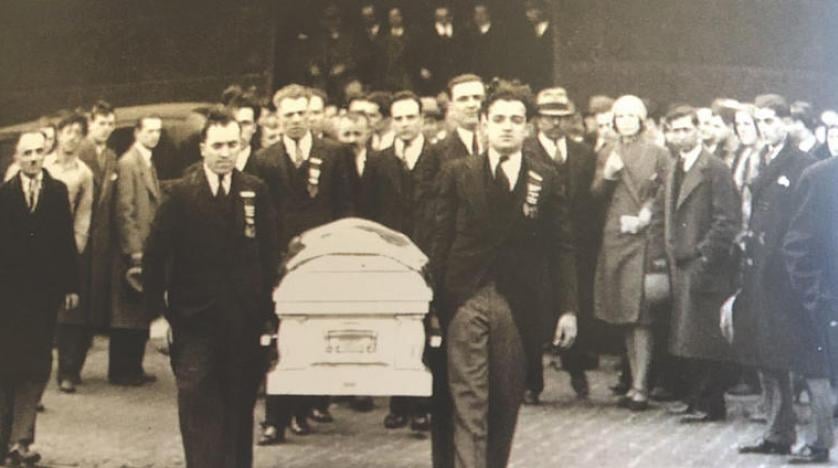 * شبان لبنانيون في بوسطن يحملون نعش جبران خارجين من محطة القطار الجنوبية لدى وصوله من نيويورك
