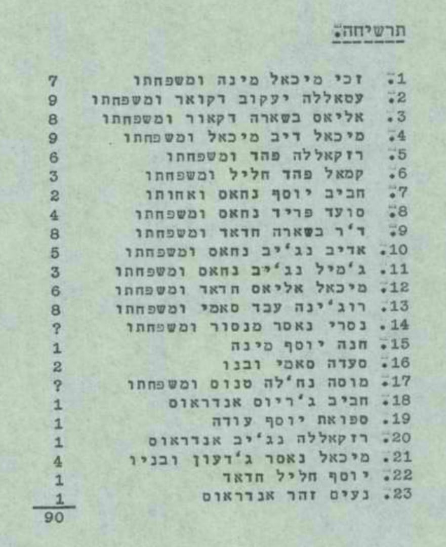قوائم العائلات المهجرة (500 عائلة) التي قدمها المطران لمؤسسات الدولة للحصول على تأشيرة دخول، تشمل إعادة 23 عائلة مهجرة من ترشيحا (90 مُهجر)، وكذلك 7 عائلات من أقرث (31 مُهجر). كما وشملت 182 عائلة (743 مُهجر) من الناصرة و- 323 عائلة (1،237 مُهجر) من حيفا.