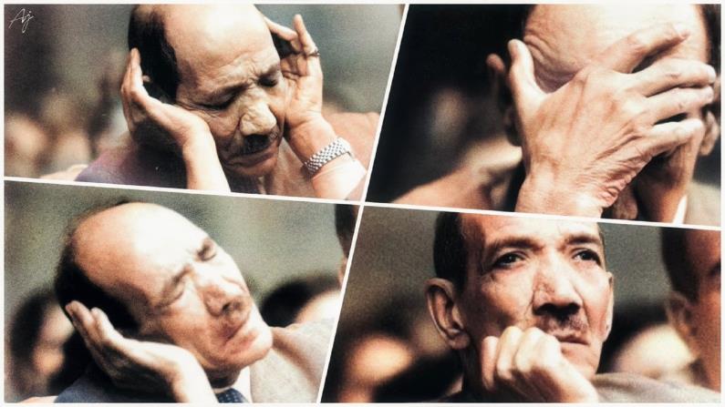 أحمد رامي، وأم كلثوم، ومحمد عبد الوهاب، على المسرح عام 1965 بعد تقديم أغنية "أنت الحب"