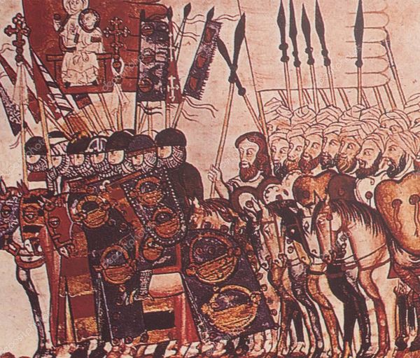في الصُورة مُنمنمة إفرنجيَّة تُصوِّرُ الجيش القشتالي يفُرُّ من أمام الجيش الإسلامي في معركة الأرك.