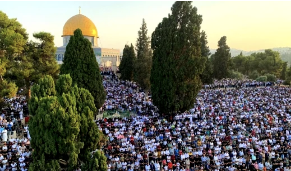 اهلا عيد الاضحى المبارك عيد التآخي والسلام والعطاء هذا ومع انطلاق ساعات العيد يوم امس واليوم صباحا شارك عشرات الالاف من المصلين، في صلاة العيد التي اقيمت في المسجد الأقصى المبارك، الذين حضروا من كل المناطق من خلال حافلات ومركبات. هذا وقد كبروا تكبيرات العيد، ومن ثم تم توزيع حلويات على المصلين. يشار الى ان جهات عديدة في القدس ناشدت التوجه دائما الى المسجد الأقصى لإعماره، مشيرين "الى ان الأقصى يواجه اقتحامات يومية بحماية من الشرطة التي تهدف الى استفزاز المصلين، ناهيك عن قرارا ابعاد مرابطين عن الأقصى لمنع رباطهم.