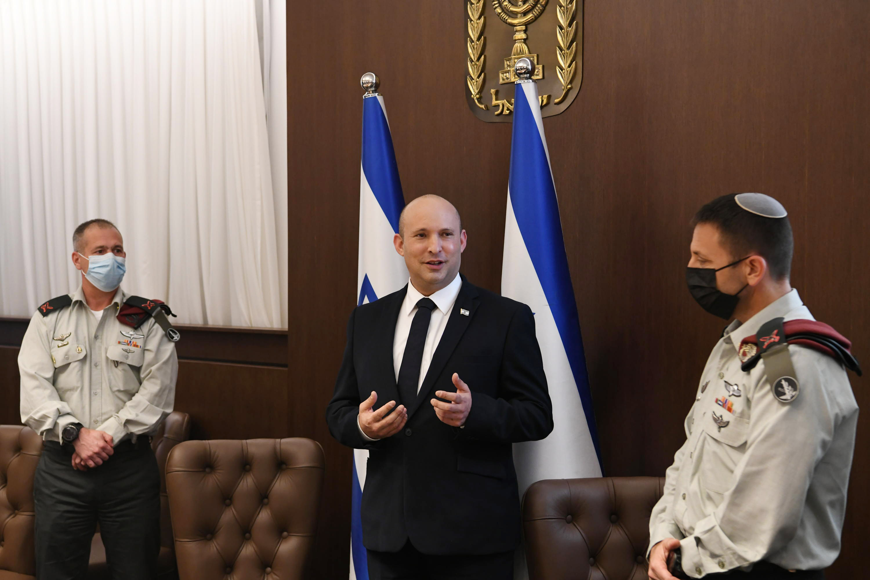 اهلا المجلس الوزاري المصغر للشؤون السياسية-الأمنية ودع اليوم السكرتير العسكري لرئيس الوزراء، العميد أفي بلوط. سيتولى السكرتير العسكري الجديد، العميد أفي غيل، منصبه خلال الأيام القليلة المقبلة. وقال رئيس الوزراء بينيت للعميد بلوط: "سمحت لك شخصيتك الفريدة بأن تخدم في أحد المناصب الأهم لأمن إسرائيل وبأن تأتي بالمعلومات المناسبة، في الوقت المناسب، ودائمًا بالنصيحة الجيدة". عقد المجلس الوزاري المصغر لشؤون الأمن القومي (المجلس الوزاري المصغر للشؤون السياسية-الأمنية) اليوم، الموافق 25 يوليو 2021، حفل وداع للسكرتير العسكري لرئيس الوزراء، العميد أفي بلوط. وحضر الفعالية كل من وزير الدفاع، بيني غانتس، ورئيس هيئة الأركان العامة لجيش الدفاع، الفريق أفيف كوخافي، ورئيس جهاز الأمن العام (الشاباك) نداف أرغمان، ووزراء المجلس الوزاري المصغر وغيرهم من مسؤولي الأجهزة الأمنية. هذا ويغادر بلوط (البالغ من العمر 46 عامًا) منصب السكرتير العسكري لرئيس الحكومة بعد أن شغله على مدار آخر ثلاث سنوات، على أن يتولى قريبًا منصب قائد فرقة يهودا والسامرة. وستتم ترقية خلفه في منصب السكرتير العسكري لرئيس الحكومة، العميد أفي غيل، لرتبة لواء مع توليه المنصب خلال الأيام القليلة المقبلة. وهنأ رئيس الوزراء، نفتالي بينيت، العميد بلوط قائلاً: "إن معنى التواضع ليس عدم الاعتراف بالقيمة الشخصية، وإنما الإدراك بأننا نخدم شيئًا أكبر. والإدراك بأننا عبارة عن ادوات في خدمة شعبنا، ودولتنا، وفي سبيل غايتنا. في هذه الفترة الخاصة التي نعيشها وما عدا التحديات الخارجية التي نواجهها هناك أيضًا تحدي وحدة الصف. وأعتقد بأنك، أفي، تجسد بشخصيتك هذين الوجهين بمعنى التواضع، مع القدرة الخارقة، إلى جانب الأمر الثاني وهو وحدة الصف. وقد سمحت لك شخصيتك بأن تأتي في هذا المكان الذي هو حقًا احد أهم الأماكن بالنسبة للأمن الإسرائيلي، بالمعلومات المناسبة في الوقت المناسب، وبالنصيحة الجيدة. لقد ساعدتني كثيرًا في تولي المنصب، متحليًا دائمًا بالنعمة، والرشاقة والشطارة. وقد ساعدتني على مدار الشهر الاخير أيضًا في قيادة العملية التي طورناها واستكملناها في المجال الأوسع، والدوائر الأبعد، وقد قمت بذلك أيضًا بحنكة كبيرة. أتمنى لك كل النجاح والتوفيق. إن قدراتك الميدانية، إلى جانب الشحنة الواسعة للغاية التي تحملها معك تؤدي بي إلى الاستنتاج بأنك ستصل إلى المفترقات الرئيسية في المساهمة في أمن إسرائيل. وهنأ رئيس الوزراء السكرتير العسكري الجديد، العميد أفي غيل، متمنيًا له النجاح والتوفيق في منصبه. الصور: عاموس بن غرشوم, مكتب الصحافة الحكومي