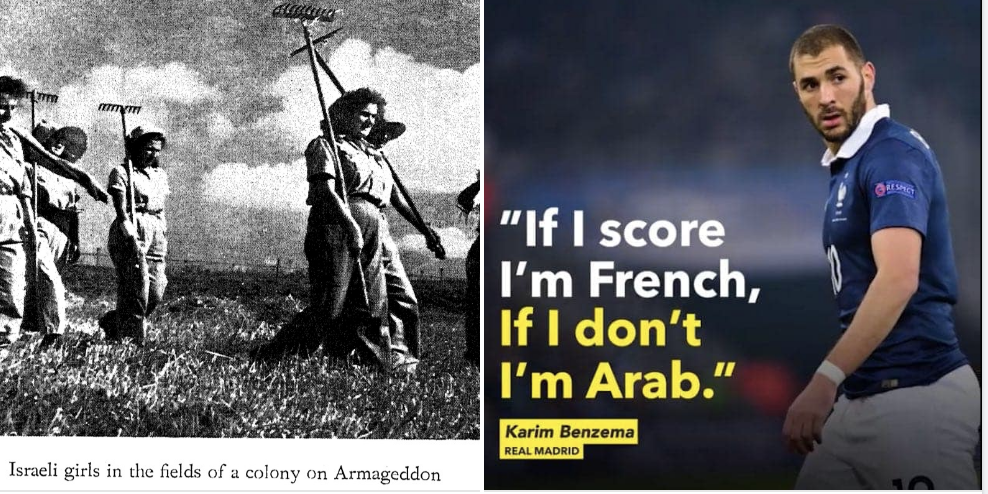 اليوم في بريطانيا هناك استكمال للعنصريات المتأصلة حيث امتلأت وسائل الاعلام الاجتماعي بشتائم عنصرية ضد ثلاثة من فريق كرة القدم من اصل افريقي بسبب فشلهم في احراز اهداف في المباراة النهائية لدوري الامم الاوروبية وفازت بها ايطاليا. هؤلاء الثلاث ولدوا في بريطانيا هم واباءهم، ومع ذلك يراهم البيض مجرد "سود" ومن مرتبة انسانية اقل (تماما كما كان دوف يصف الفلسطينيين). في فرنسا تعرض اللاعب الشهير امبابي لنفس العنصرية الفرنسية بسبب فشله في ركلة جزاء ضد سويسرا. اللاعب المحبوب والمولود في فرنسا تحول الى عدو الامة.