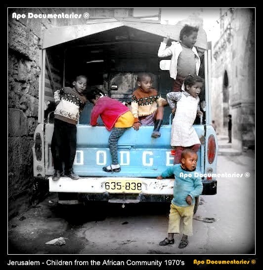 اهلا- القدس – أطفال من أبناء الجالية الافريقية في سبعينيات القرن الماضي - يعود تاريخ الجالية الافريقية في القدس الى أواخر القرن التاسع عشر ومطلع القرن العشرين حيث تعود جذورهم الى أربعة دول افريقية هي تشاد، نيجيريا. السنغال والسودان وقد قدموا الى المدينة المقدسة لاستكمال حجهم بعد الحج الى مكة والمدينة حيث استقر بعضهم في المدينة المقدسة حول الحرم القدسي الشريف لتقديم الخدمات المختلفة للحرم القدسي من حراسة وتقديم يد العون للحجاج المسلمين اثناء حجهم الى المسجد الأقصى المبارك، أولى القبلتين وثالث الحرمين. استمر وفود الافارقة المسلمين الى القدس اثناء فترة الانتداب البريطاني وكذلك شارك عدد منهم في جيش التحرير العربي الذي خاض بعض المعارك في فلسطين اثناء الحرب العربية الإسرائيلية في العام 1948 حيث استقر بعضا من هؤلاء الجنود الافارقة في مدينة القدس ... سكنت الجالية الافريقية منذ أربعينات القرن الماضي بالقرب من باب المجلس والذي يسمى كذلك بباب الناظر في رباطين وهما رباط علاء الدين البصير والرباط المنصوري حيث بني هذين الرباطين في فترة الحكم المملوكي كاستراحة للحجاج المسلمين وكذلك تم استخدامه من قبل العثمانيين كسجن. يبلغ عدد افراد الجالية الافريقية حاليا حوالي 350 شخصا حيث يعيش معظمهم في اكتظاظ شديد في غرف صغيرة متلاصقة.