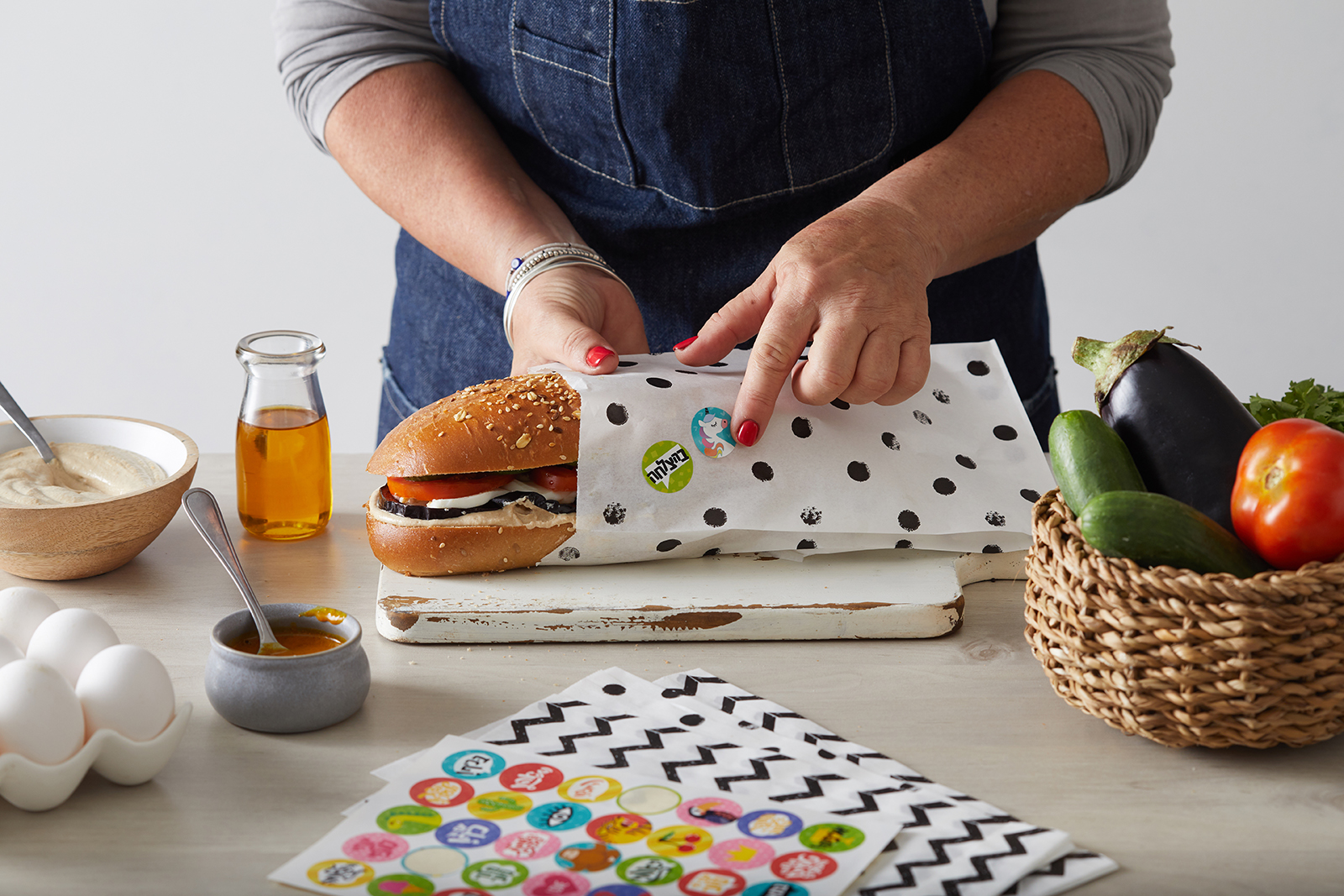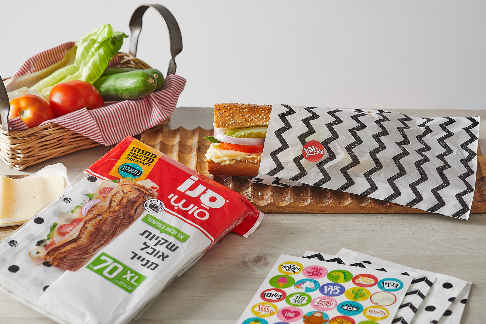 وأكياس الطعام الورقية مصممة وملوّنة مع ملصقات هدية في كل رزمة، طولها مناسب للباجيت أو الساندويش في زوّادة الأولاد، كما أنها صديقة للبيئة.