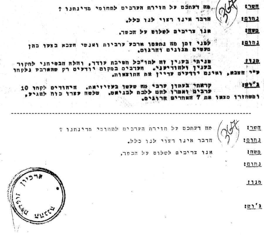 لا نعرف إذا كان أكثر تفصيلاً، لكن هذا ما تم توثيقه، وتسجيله في بروتوكول اللقاء. شارك في اللقاء نفسه عامنوئيل فريدمان، مسئول الأقليات في منطقة صفد، الذي تم توثيق حديثه في البروتوكول. يقول إنه توجه إلى المسئول في وحدة "عوديد" العسكرية، وهذا وعده في التحقيق بالموضوع، يضيف عامنوئيل أن "العرب في المنطقة يعلمون عن اختفاء النساء الأربع لكن لا يعلمون ما حل بهن".في العاشر من آب من العام عينه، عقد اجتماع في كيبوتس كفار جلعادي بين أهالي هونين، والمسؤولين الصهاينة. مثّل أهالي هونين في هذا اللقاء أربعة من وجهاء البلدة وهم شاكر فارس، ومحمد واكد، ومحمد الشاعر، ومحمد برجاوي، وشارك من الطرف الثاني عامنوئيل فريدمان. في اللقاء، طالب وجهاء القرية السماح لأقربائهم الذين هجروا قبل ثلاثة أشهر بالعودة إلى بلدتهم. تعهد عامنوئيل نقل طلبهم إلى المسؤولين عنه مع توصية بالاستجابة إلى مطلبهم.