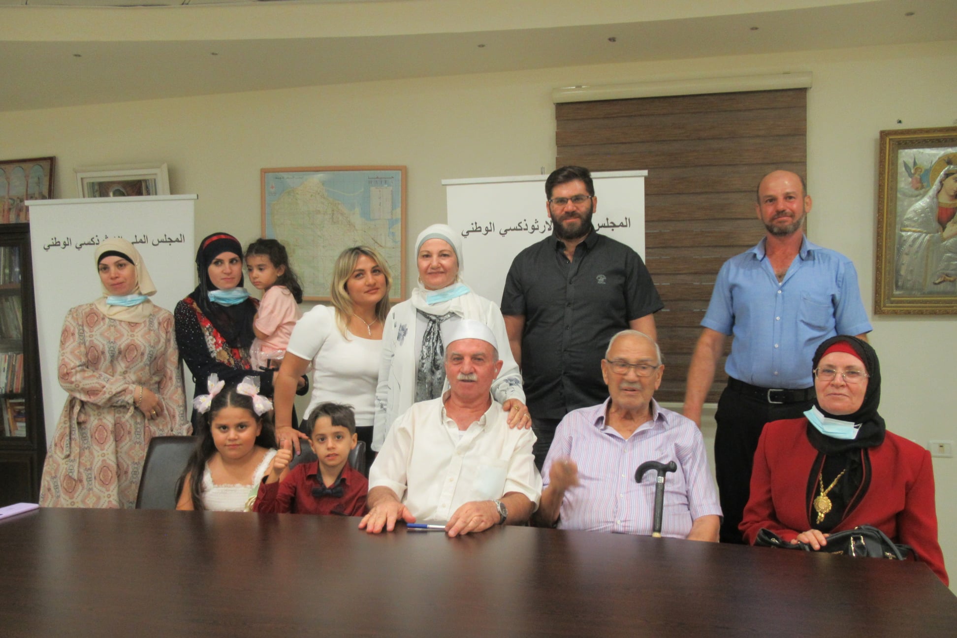 كانت بعده فقرة التكريم فدُعي للمنصة السيد جريس خوري ممثلا عن المجلس الملي الأرثوذكسي الوطني والمحامي فؤاد نقارة ممثلا عن النادي ليقدما درع للتكريم مصحوبا بكلمة تحية وتقدير للمكرَّم. كما كرمته عائلته بباقات ورد وكلمات محبة.
