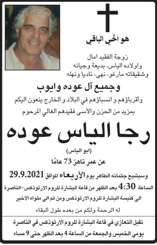 الناصرة: وفاة الفاضل رجا الياس عوده
