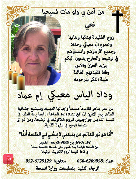 ترشيحا: وفاة الفاضلة وداد معيكي ام عماد