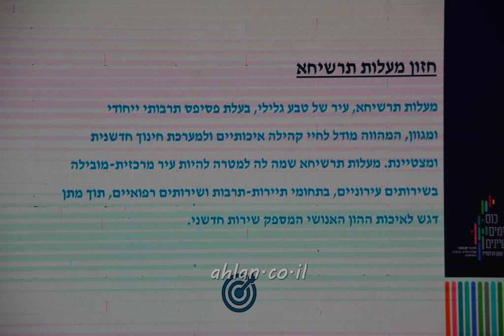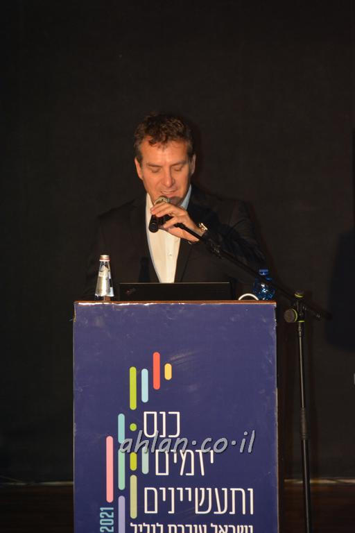 اهلا-تصوير اهلا مؤتمر الصناعه ورجال الصناعه والمبادرات عريف اليوم الاذاعي داني كوشمارو افتتح اليوم بكلمة ترحيب . كان اول المتحدثين اركادي بوميراتنس رئيس بلدية معلوت ترشيحا حيث رحب بجميع الحضور بكلمته وضع اركادي برامج مستقبليه امام الصناعيين وكشف عن الخطة التي يعملون عليها ربط مدينة معلوت ترشيحا بشبكات المواصلات القطار والباصات بشكل واسع هذا وعرض امام الحاضرين عن اهمية معلوت ترشيحا في مركز الجليل ومكانتها اهميتها من اجل تطوير منطقة الجليل ودعا رجال الاعمال بالعمل على برنامج طويل لتطوير الجليل.