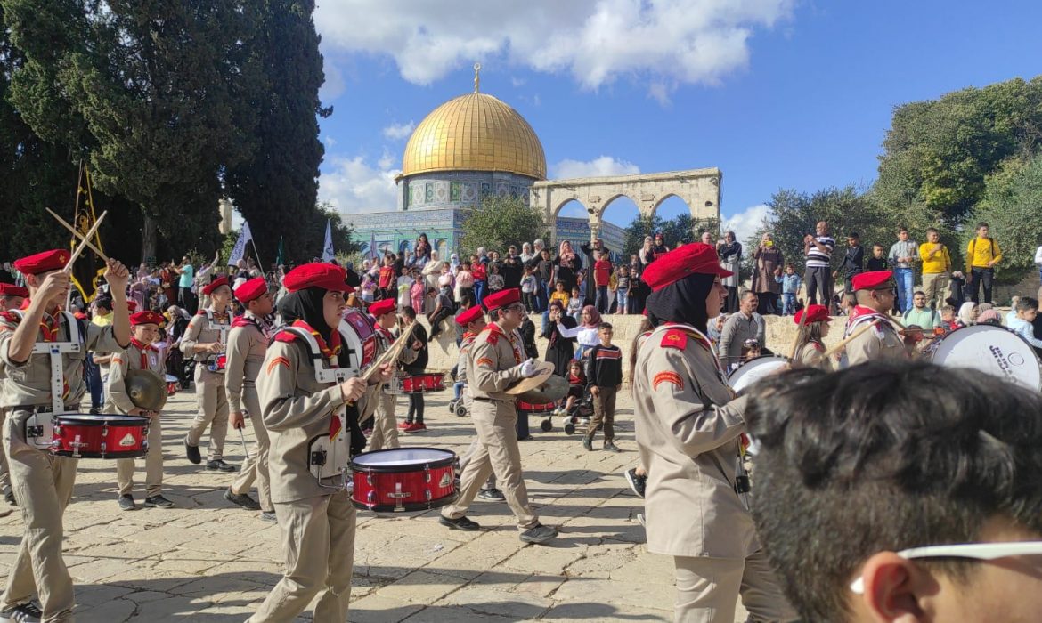 واشتملت الاحتفالات على تقديم فرق الكشافة المقدسية عروضها في شوارع القدس، مرورًا بالبلدة القديمة باتجاه المسجد الأقصى المبارك، وصولًا إلى “باب العامود”، حيث تجمع المقدسيون عند مدرجات “باب العامود” ومحيطه، لمشاهدة فرق الكشافة.