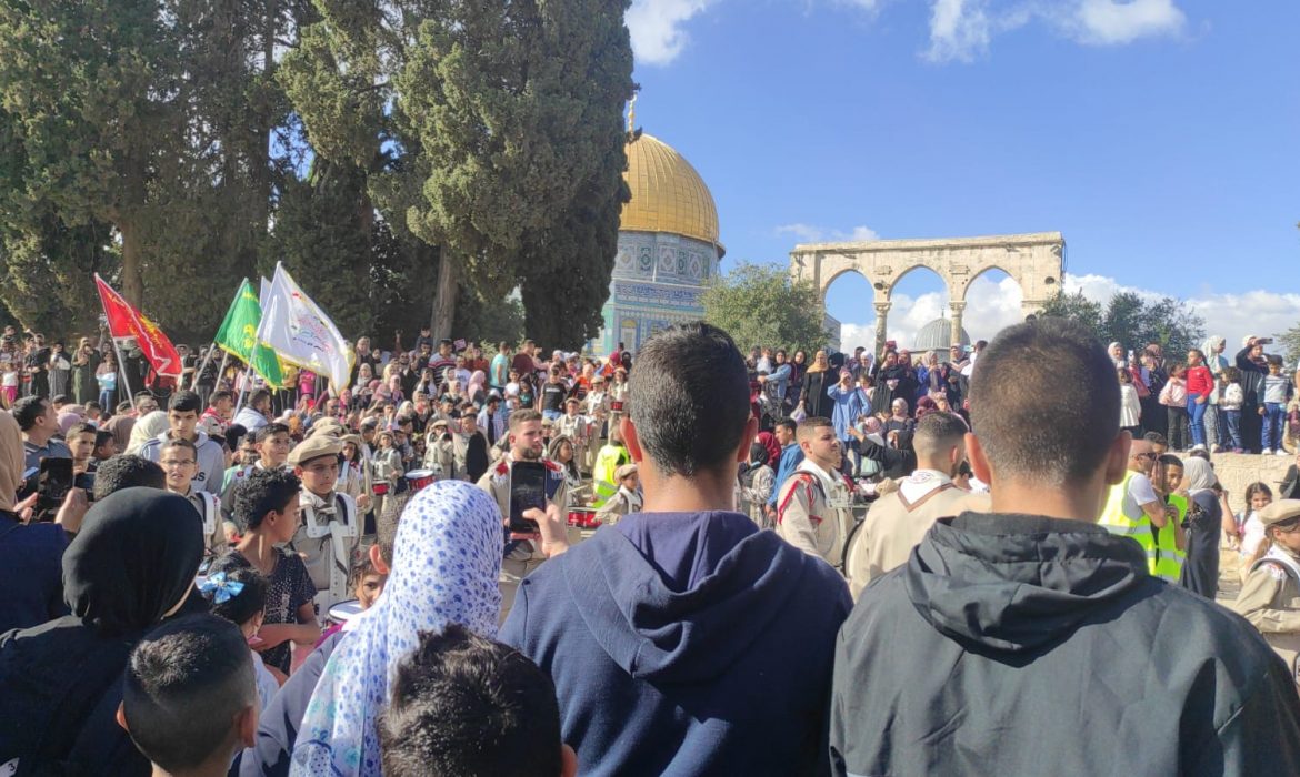 اهلا-فلسطين شارك آلاف الفلسطينيين، اليوم الثلاثاء، في احتفالات إحياء ذكرى المولد النبوي الشريف داخل المسجد الأقصى في مدينة القدس المحتلة، وسط إجراءات إسرائيلية مشددة وفرض قيود على الوافدين للأقصى.