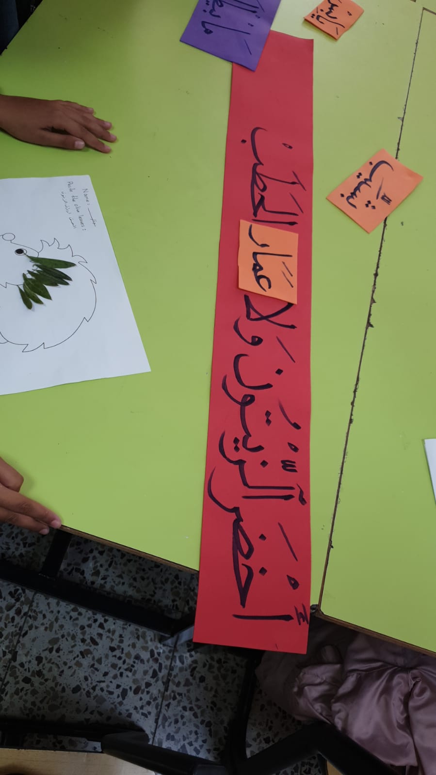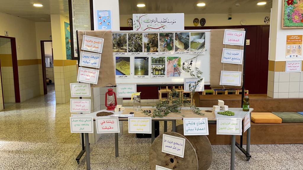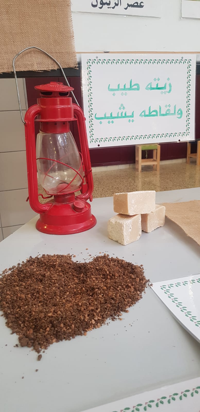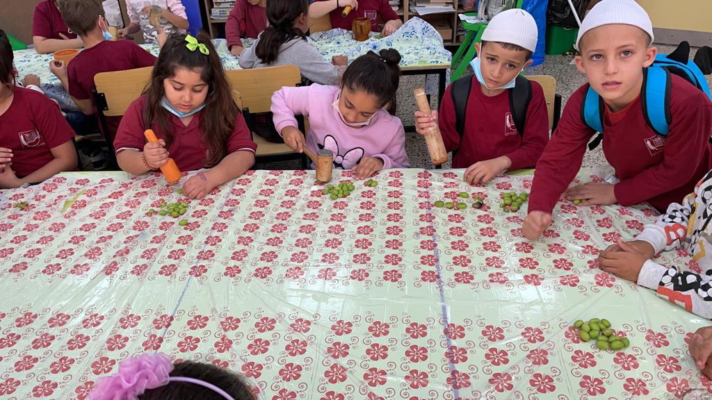 ولا نترك شغفٌ لحبّ الطالب لرصّ حبّات الزّيتون حيث خصّصنا محطة لذلك ، كل طالب مع مربي الصف قامَ برصّ الزّيتون الأخضر كي يتسنى لهم كبس هذه الحبات وهنا نكون شملنا مراحل كبس الزيتون وذوتناها لدى الطالب الذي نفذ ذلك بنفسهِ .