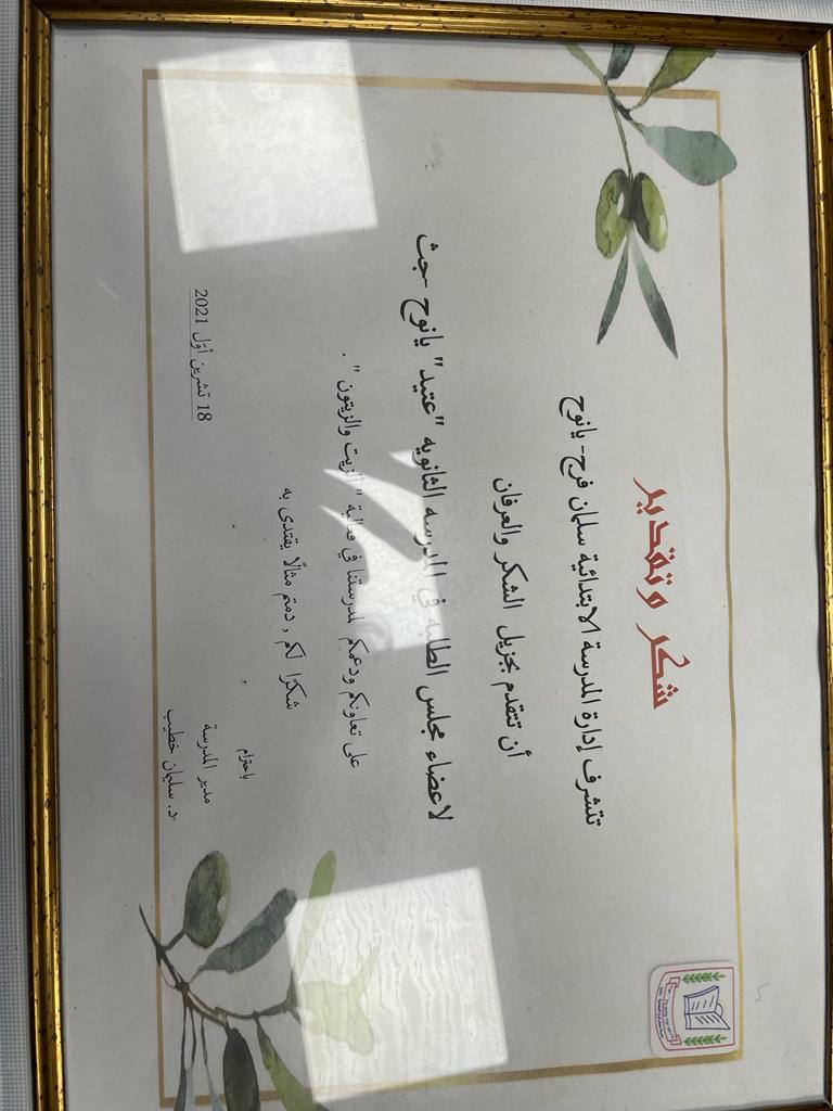 بهذه المناسبة الجميلة بودنا أن نشكر من قامت بالتّخطيط لهذه الفعالية مركزة التّربية الاجتماعية المربية وفاء حصباني بالتّعاون مع المدير ، المعلمة اسمى عامر وسنا سعد