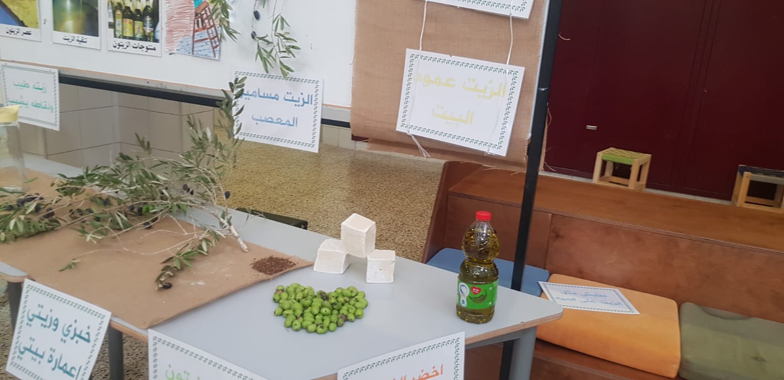 وايضًا محطة ابداع لمنتج تراثيّ ثمين الّذي نلمسه بين اجدادنا وهي صابونة الزّيت المعروفة وخاصةً لدينا في الطّائفة المعروفية حيث قام الأخ هاني خطيب ببناء مجسم من بعض المواد وأهمها صابونة الزيت حيث يجسد لنا عملية الاستحمام والاستعمال الماضي لهذه الصابونة ، قام بتقديم هذه الفعالية الطالب اياد هاني خطيب من الصف الخامس وقدّم معلومات قيّمة عن الموضوع .