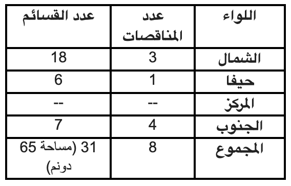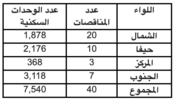 ويلحظ أن الزيادة الأكبر لعدد الوحدات السكنية المعروضة للتسويق حصلت في لواء حيفا وفي لواء الجنوب, بينما تقلص العدد في باقي الألوية.