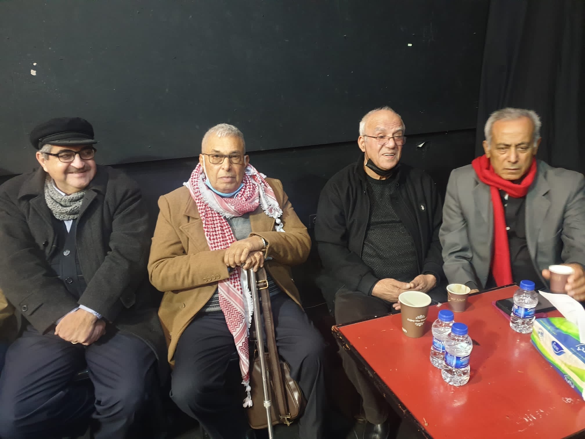 اهلا- زياد شليوط ندوة اليوم السابع المقدسيّ يستقبل الاتّحاد العام للكتّاب – الكرمل48 ضمن مشروع التواصل الثقافي بين الكلّ الفلسطيني الذي بدأه الاتّحاد أوائل العام 2021 من رام الله فالخليل فجنين فنابلس، فها هو يضع لبنة أخرى في القدس. كان هذا الشهر الأوّل من العام 2022 اللقاء الخامس في الـ20 من كانون الثاني، في المسرح الوطني الفلسطيني المقدسي (مسرح الحكواتي) ضمن ندوة اليوم السابع التي تديرها الكاتبة ديمة السّمان وبحضور نخبة من الشعراء والأدباء؛ الأستاذ جميل السلحوت وعز الدين السعد والروائي عزام ابو السعود والمحامي علي ابو هلال والكاتب محمود شقير والشاعر رفعت يحيى زيتون والشاعر عز الدين ابو ميزر ونخبة مميزة من المثقفين والكتاب، واستهلت الأديبة ديمة السّمان اللقاء بالترحيب بأعضاء الاتحاد "إننا نستقبلكم اليوم بقلوبنا قبل حروفنا في هذا الصرح المميز الذي يديره الفنان عامر خليل من أجل توحيد الجهود الثقافية أينما كانت في هذا الوطن... وقد انتظرنا هذا اللقاء طويلًا".