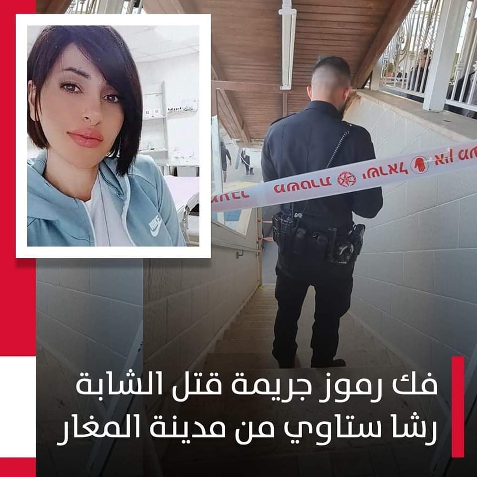 الوحدة المركزيّة في شرطة لواء الشّمال تفكّ رموز مقتل المرحومة رشا ستاوي (30 عامًا) في (25/11/21 ) والتي قُتلت في منزلها بالمغار بعد تعرضها لإطلاق نار.
