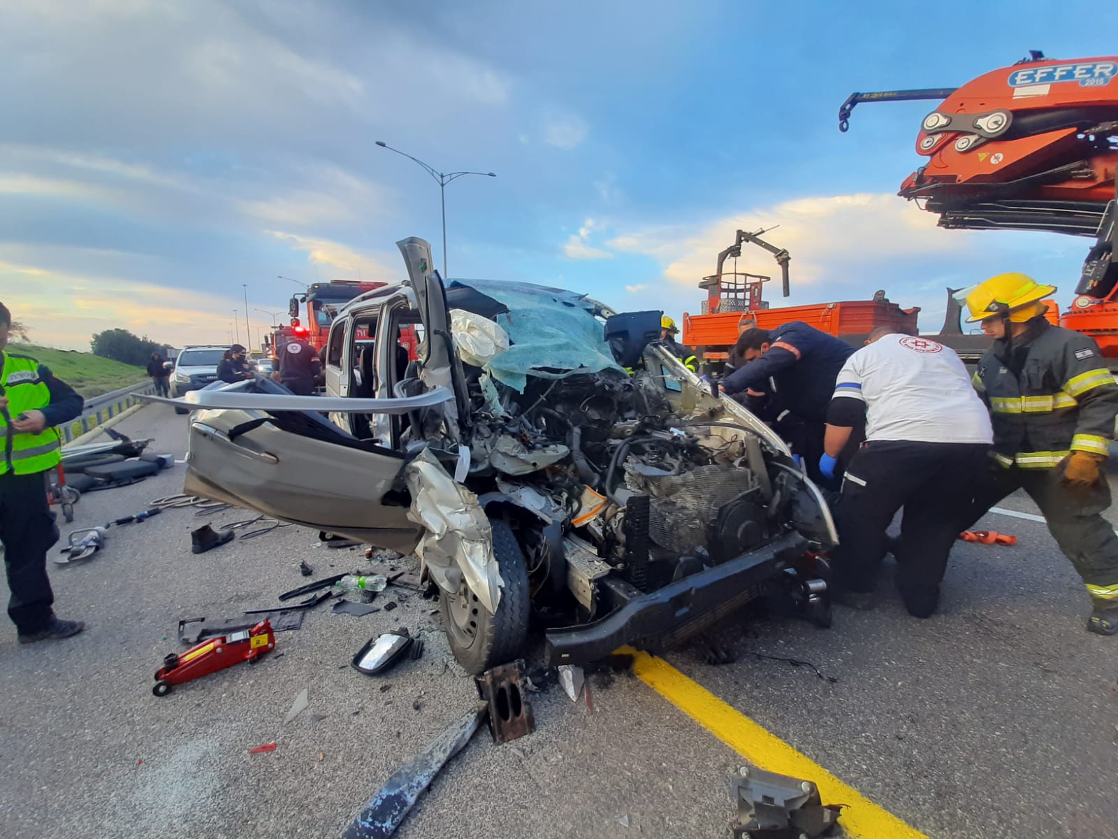 اهلا-تصوير الاطفاء شارع رقم ٦مفرق باقه الغربيه.مصرع سيدة واصابات جراء حادث طرق بين شاحنه وسياره.