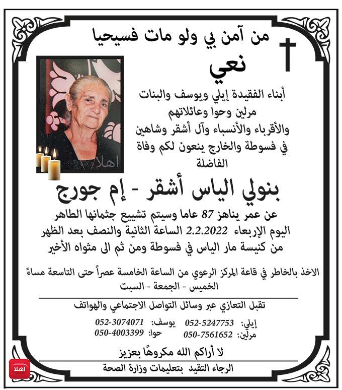 فسوطة: وفاة الفاضلة بنولي الياس اشقر