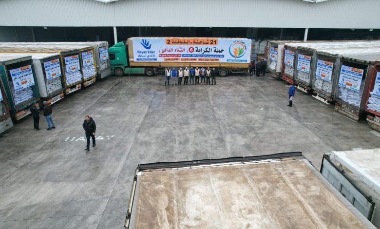 وأوضح منصور أن جمعية “العيش بكرامة” تعمل في مناطق لجوء ونزوح السوريين، بالتعاون مع جمعية “الأيادي البيضاء” التركية حيث تشرف على تنفيذ مشروعات الجمعية الاغاثية وشراء المعونات.