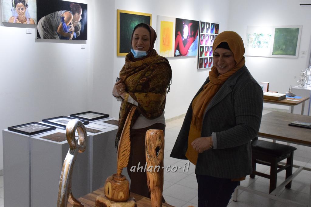 وقد ضم المعرض لوحات فنية من الاساليب الواقعية والتجريدية والارابسك ومنحوتات خشبية وكذلك من رقائق القصدير والنحاس.