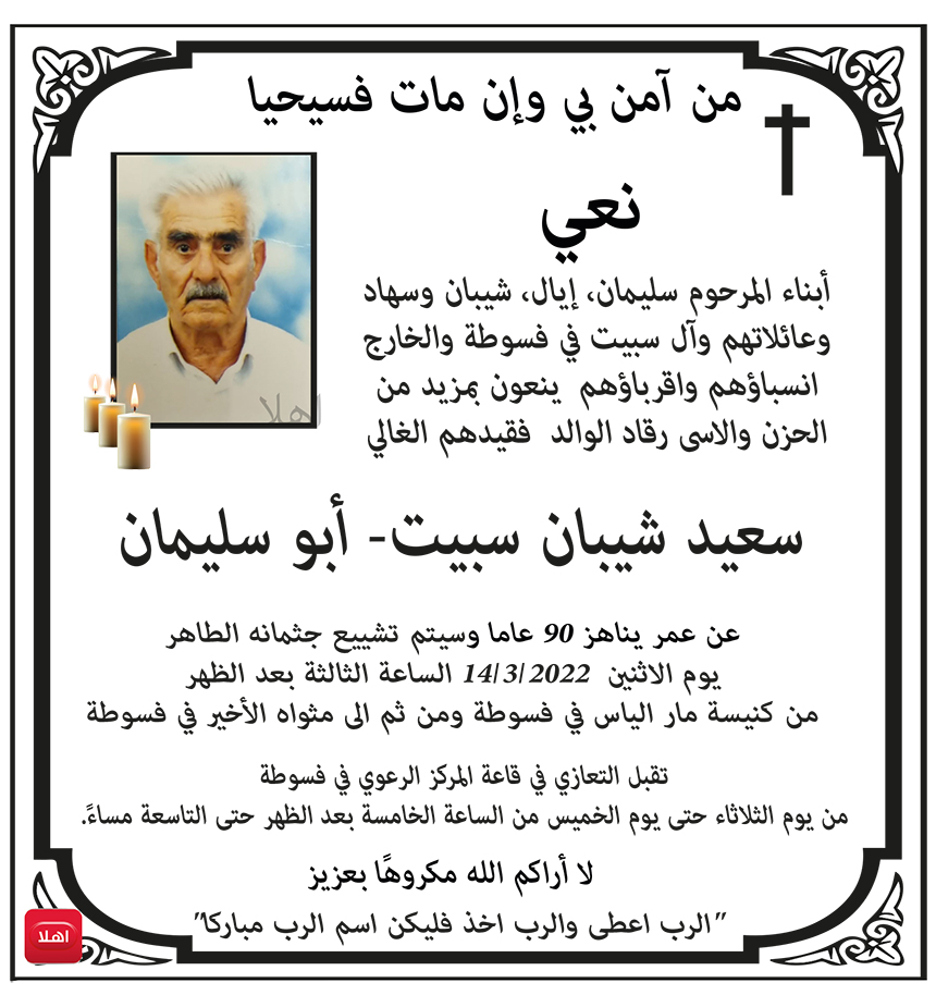 فسوطة: وفاة الفاضل سعيد شيبان سبيت ابو سليمان