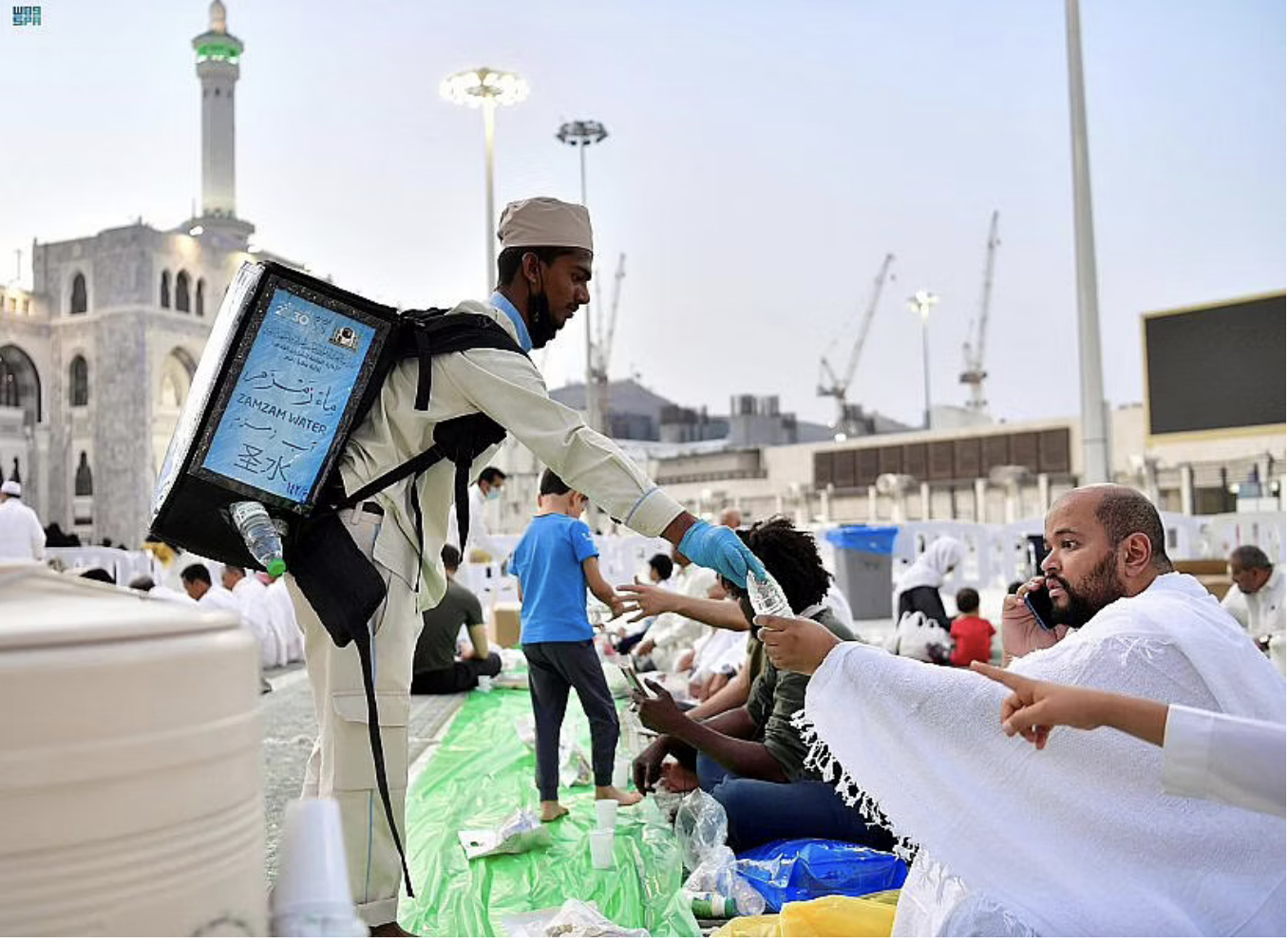 اهلا-واس بالصور.. موائد الإفطار تعود لساحات المسجد الحرام مع بداية شهر رمضان وتتولى بعض الجهات الرسمية وعدد من الجمعيات توزيع موائد الإفطار بأسلوب منظم ومرتب بمشاركة المتطوعين والمتطوعات، في مشهد يتكرر بشكل يومي وبمشاركة أهالي مكة المكرمة في توزيع أنواع مختلفة من التمور وماء زمزم، وقبل إقامة الصلاة تجد العاملين على هذه السُّفَر يجوبون صحن المطاف وأروقة المسجد الحرام وساحاته لجمع سفر الإفطار في وقت قياسي؛ كي يتسنى للمصلين أن يصطفوا لأداء الصلاة. وكانت رئاسة شؤون الحرمين قد منحت أكثر من 2000 تصريح لتقديم إفطار صائم محددة، بعض من الشروط تتمثل في توفير صحون البلاستيك ذات الحجم المناسب لوضع التمر بها، واستخدام القفازات البلاستيكية عند إعداد الإفطار للصائمين، كما منعت استخدام الكاسات البلاستيكية للمشروبات الساخنة وتوزيعها في الممرات وعند مداخل الأبواب. من جانبهم أشاد عدد من المعتمرين والمصلين بعودة موائد إفطار الصائم إلى المسجد الحرام بعد انقطاع دام عامين، سائلين الله عز وجل أن يتقبل من جميع المسلمين صالح الأعمال.