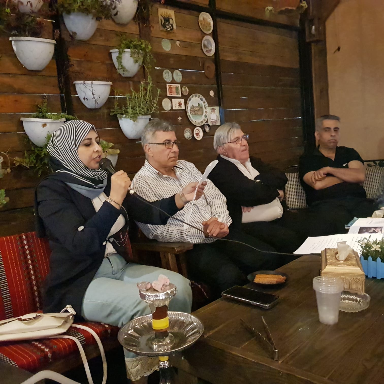 هذا وكان في استقبال الوفد عدد من الأدباء والأديبات من طولكرم والمنطقة، من بينهم: الدكتورة الروائية رولا خالد غانم، أمين سرّ فرع طولكرم للاتّحاد الفلسطينيّ والكاتبة سجى حسون (مطرئيل)، الشاعرة نائلة أبو رحوم، السجين المحرر فيصل سلامة، الأستاذ صايل خليل (قدم مشاركة بعنوان "يجمعنا الألم والأمل"). والشاعر طارق عبد الكريم (ابن شقيق الشاعر المجاهد الشهيد عبد الرحيم محمود)، السيد أشرف الأشقر (قدّم قراءة من كتاب "للسجن مذاق آخر") والشاعرة نائلة إبراهيم أبو طاحون، الشاعر محمد زايد، الشاعر عمر عمارة. وقد دار حوار بنّاء بين الضيوف والمضيفين لتوثيق الصلة والتعارف بينهم حتى حان موعد الإفطار، فاجتمعوا على مائدة واحدة في مطعم "الحاكورة"، وبعدها عقدت أمسية أدبية شارك فيها شاعرات وشعراء وأدباء من الجانبين.