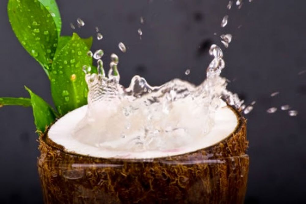 -كوبين كبار من ماء جوز الهند وطبعا يفضل استخدام الماء الذي يكون في الثمره الخضراء لكن يمكن اخذ ايضا الماء من الجوزة الناضجه