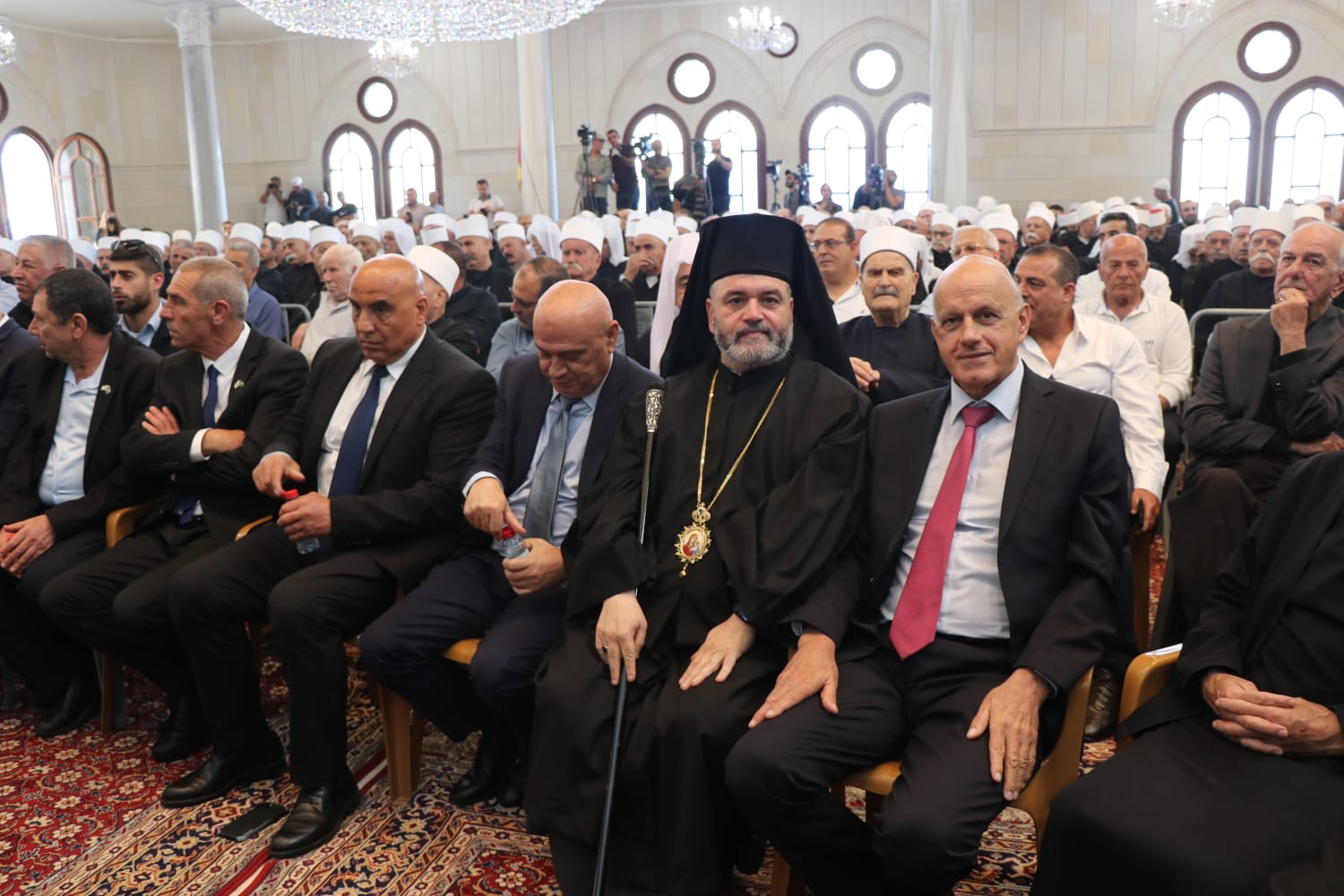 يذكر أنّ المحامي فريد غانم، رئيس بلدية المغار والناطق بلسان السّلطات المحلّيّة الدّرزيّة تولّى عرافة المراسم الّتي حضرها الآلاف..jpeg)