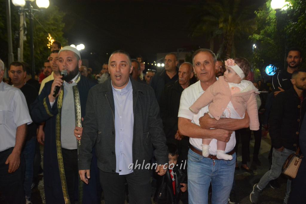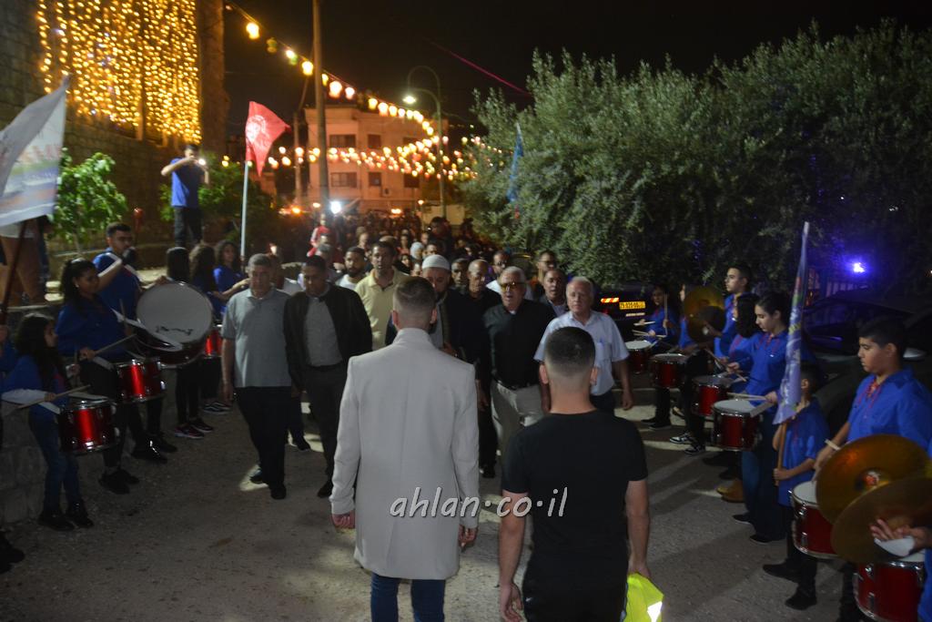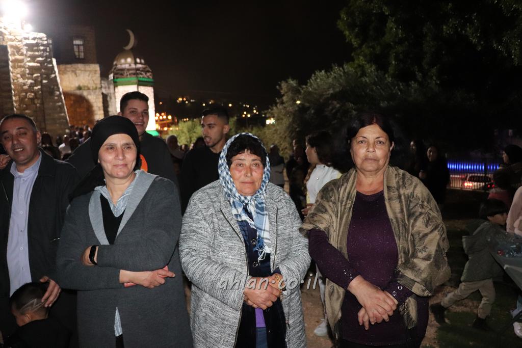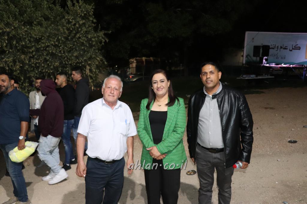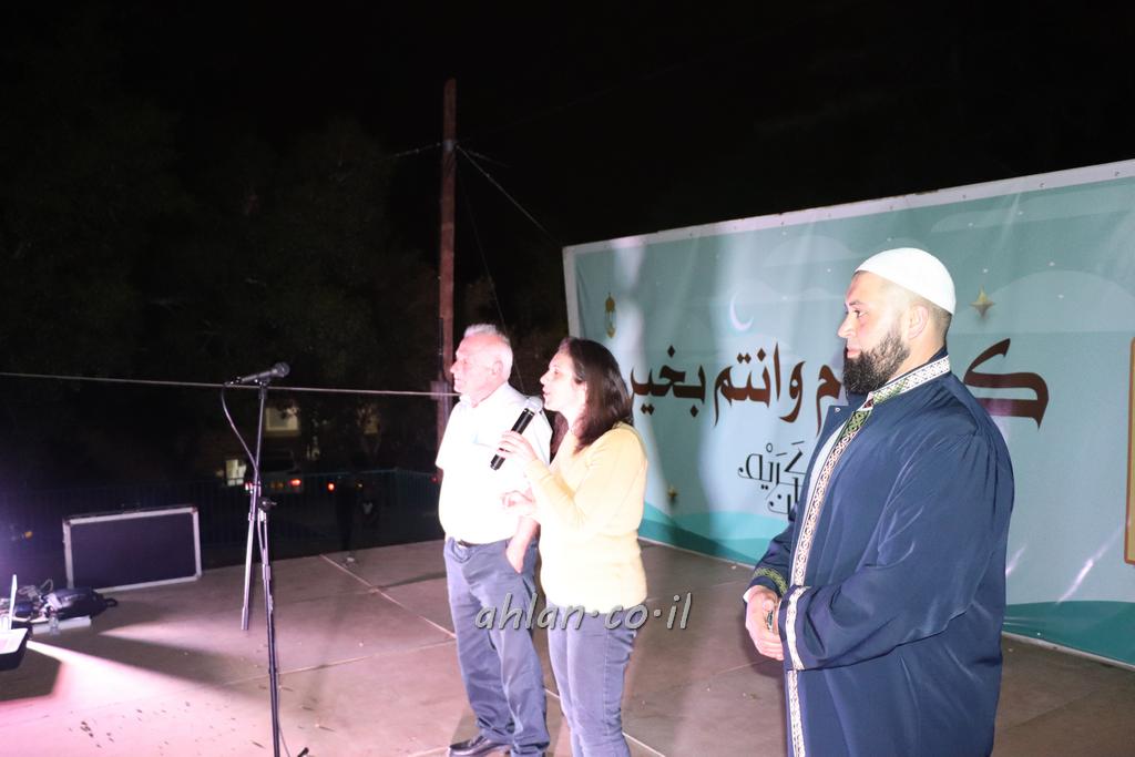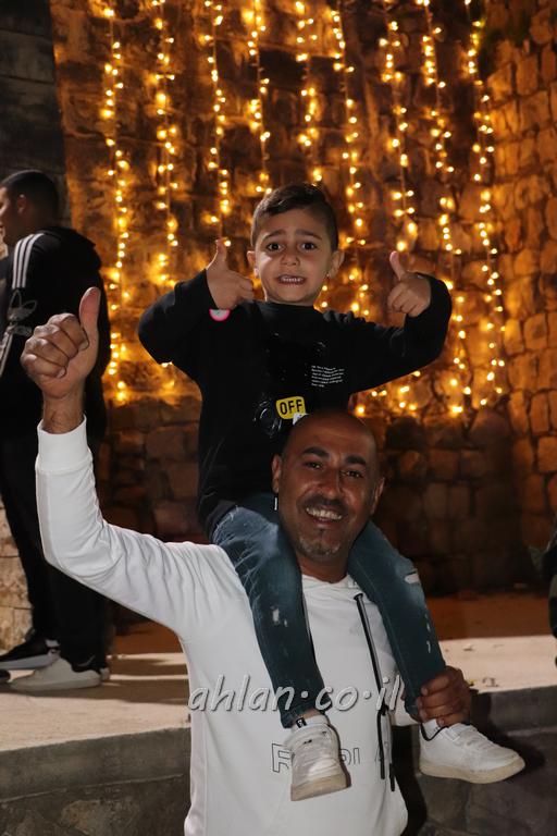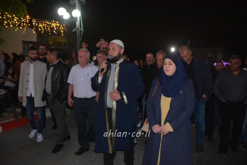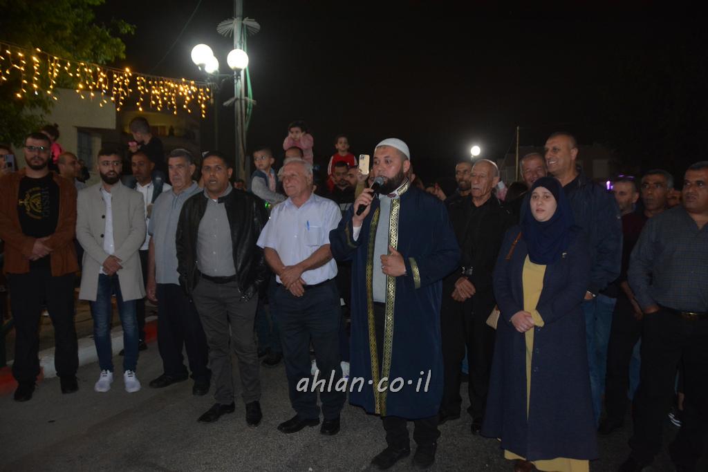 ووصولا الى الساحة التي بجانب المركز الشاذلي كانت بالاستقبال الالعاب النارية ومن ثم كانت قد رحبت بالحضور الكرام السيدة وفاء جمول مديرة المركز الجماهيري ودعت الامام ابراهيم سويطات ليعطي بركته ويلقي كلمة التهنئة بالعيد السعيد ومن ثم كانت كلمة الشكر والترحيب من السيد نخلة طنوس عن البلدية ونذكر ان مشاركة واسعه شملت جميع اهالي القرية المحتفلين ولا ننس ان ابناء يوسف ابو حسان قد قدموا الواجب لجميع الحضور والحلويات معايدة العيد لاهل البلدة .