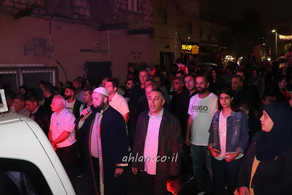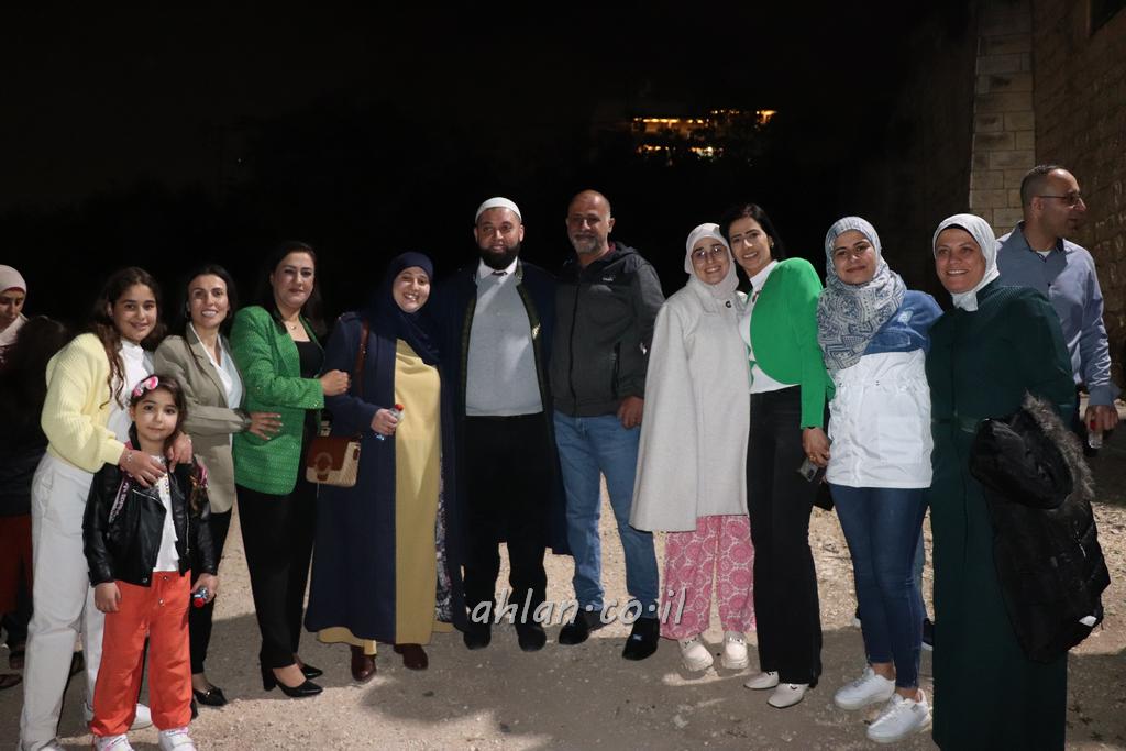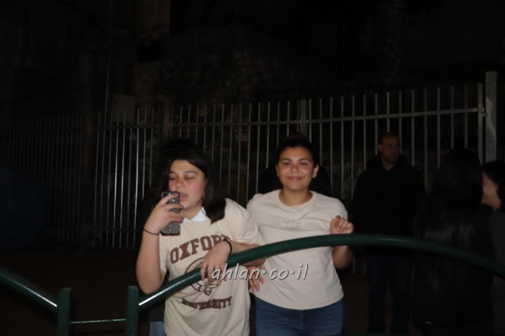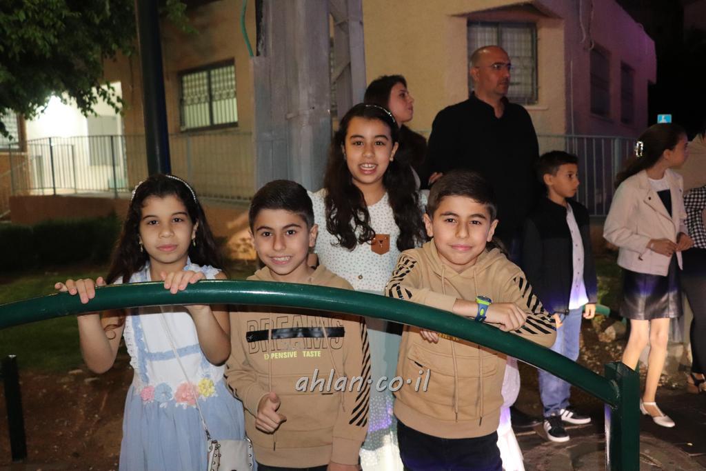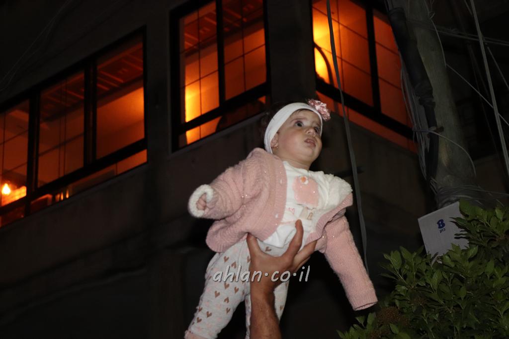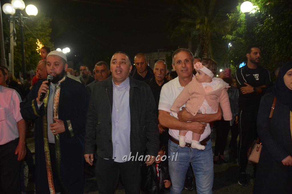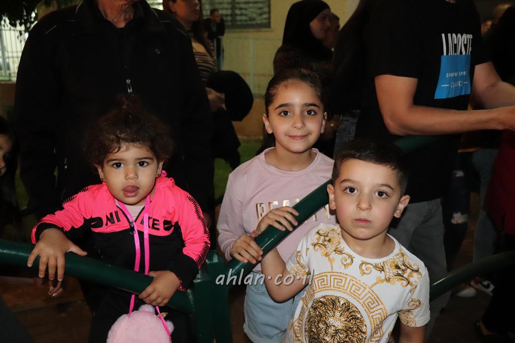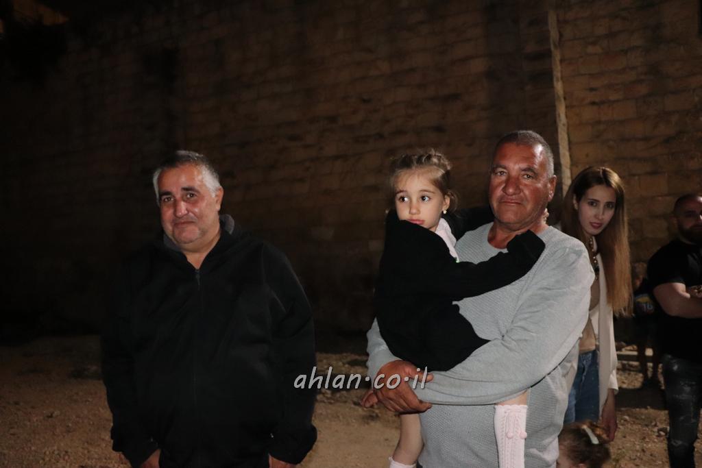 ووصولا الى الساحة التي بجانب المركز الشاذلي كانت بالاستقبال الالعاب النارية ومن ثم كانت قد رحبت بالحضور الكرام السيدة وفاء جمول مديرة المركز الجماهيري ودعت الامام ابراهيم سويطات ليعطي بركته ويلقي كلمة التهنئة بالعيد السعيد ومن ثم كانت كلمة الشكر والترحيب من السيد نخلة طنوس عن البلدية ونذكر ان مشاركة واسعه شملت جميع اهالي القرية المحتفلين ولا ننس ان ابناء يوسف ابو حسان قد قدموا الواجب لجميع الحضور والحلويات معايدة العيد لاهل البلدة .