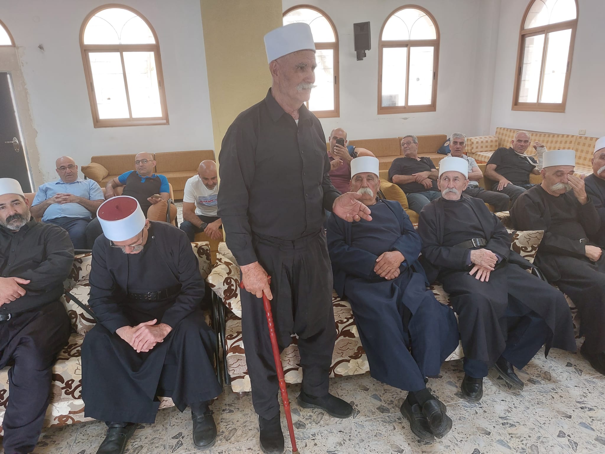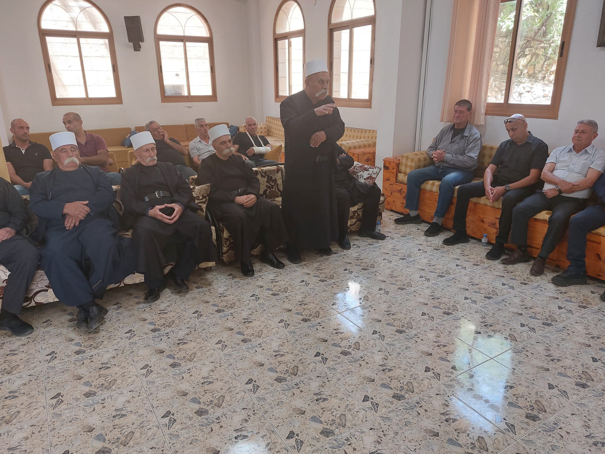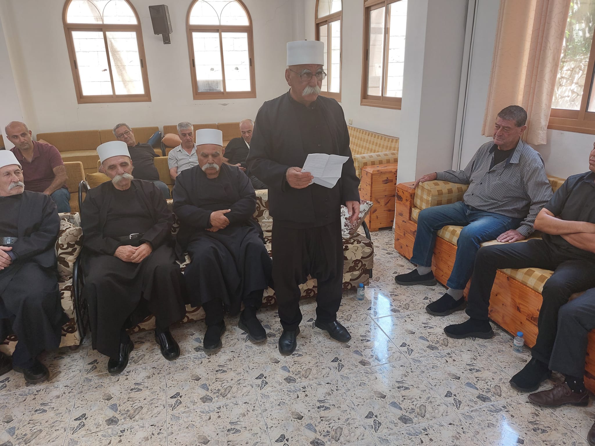 اهلا المغار: وجهاء من الطائفتين الدرزية والمسيحية يعايدون الطائفة الاسلامية بعيد الفطر السعيد تلاه رئيس بلدية المغار المحامي فريد غانم الذي هنأ المحتفلين بالعيد وقال هذه الزيارة جاءت لتقريب القلوب وتصفية النوايا. وشجب التفرقة بين الطوائف عبر شبكات التواصل الاجتماعي وقال يجب علينا المحافظة على حبنا لبعضنا البعض . وتحدث باسم الطائفة المسيحية قدس الأب منير مزاوي الذي هنأ بالعيد وبمرور شهر رمضان والاحتفال بعيد الفطر . وأكد أن الصوم هو ترويض للنفس وضبط كل ما تطلبه من أجل التقرب من الله . وتحدث عن الطائفة الدرزية سايس الخلوة الغربية الشيخ أبو عماد حسن غانم الذي عدد خصال شهر رمضان وعيد الفطر السعيد تلاه الشيخ الدكتور سعيد قزل الذي تقدم للطائفة الاسلامية بأجمل التهاني متمنيا أن يعود العيد والسلام يرفرف في شرقنا الحبيب وبعده تحدث الشيخ أبو أديب مجيد سرحان . وكان مسك الختام كلمة الشيخ ماجد سلامة إمام جامع النهضة الذي شكر الوفدين ووجهاء الطائفتين بهذه الزيارة وشدد على فضائل شهر رمضان الذي يعيد الانسان الى انسانيته