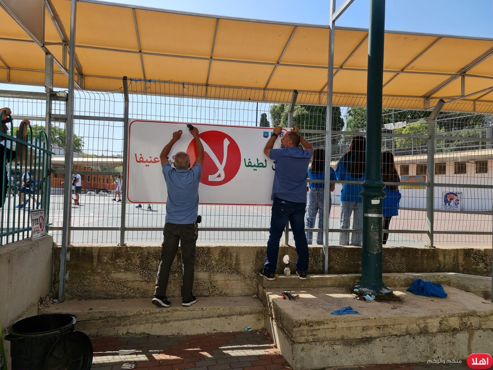 وخلال اليوم عملت اللجنة على تعليق لافتات تهدف إلى تذويت مفاهيم وقيم إيجابية لدى الطلاب.