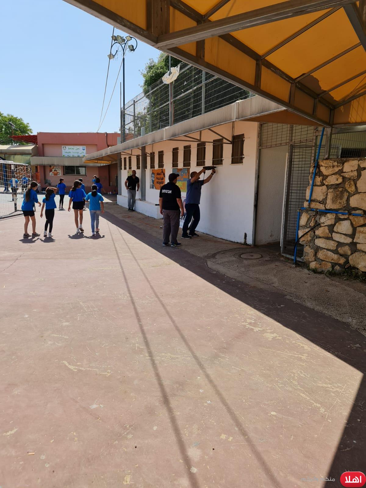 وعليه تقوم بالعمل على تجديد الألوان في ساحة المدرسة، دهن المقاعد الخشبية، تجديد الأحواض والزراعة، كما تم الإتفاق مع قصار لتجديد الجدران المحاذية للساحة، وذلك لكي نمنح أولادنا ساحة تليق بهم.