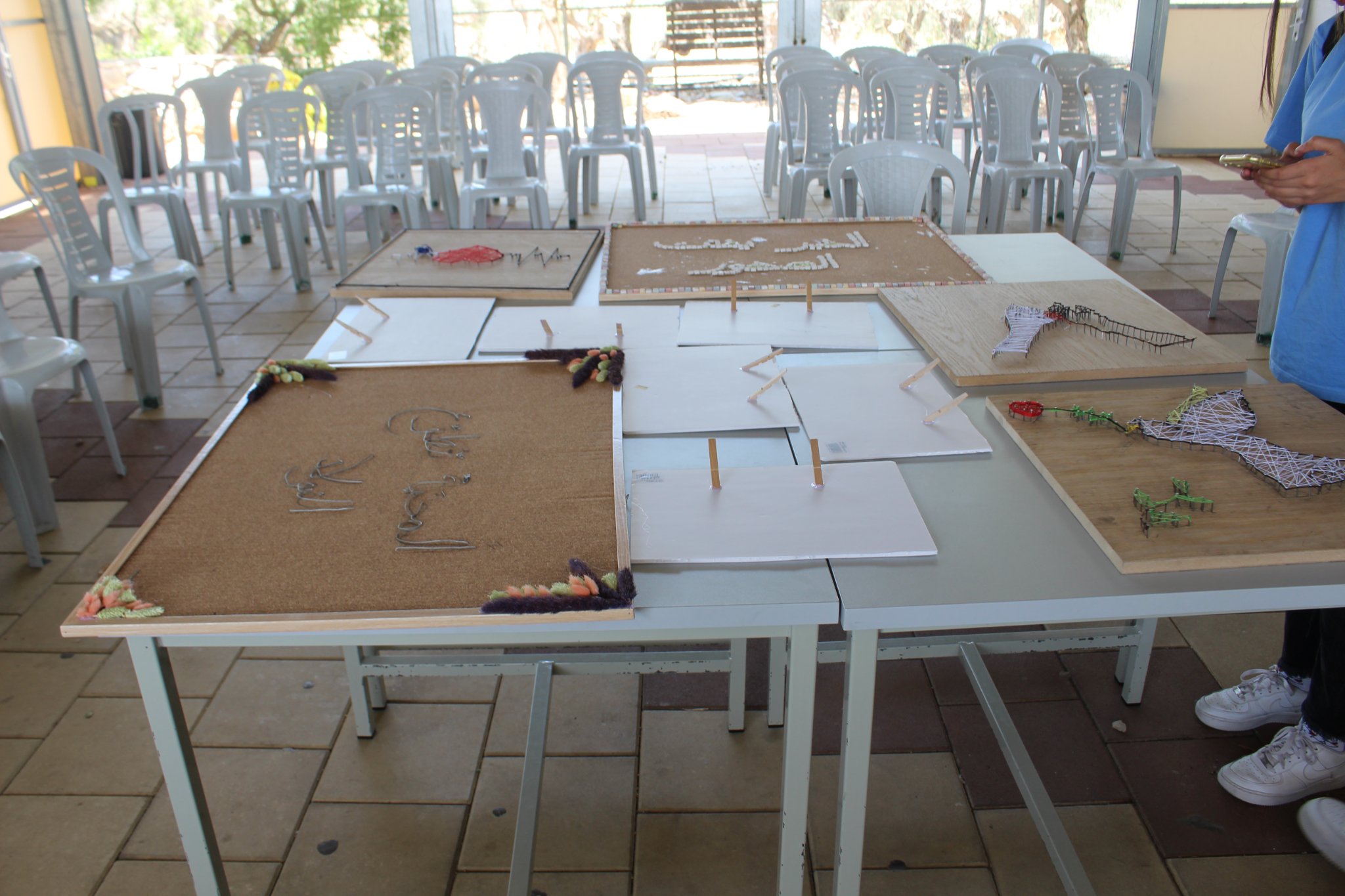 تخلّل النّهار سبع محطّات لسبع ورشات فنّيّة مختلفة، توزّع الطّلّاب على المجموعات وفق ميولهم وهواياتهم، وأنتجوا خلال الورشة مُنتجات فنّيّة مبتكرة من موادّ مختلفة، جعلوا هذه الموادّ تسير في حوار وانسجام لتؤدّي فكرة ورسالة، وقيمة فنّيّة وإنسانيّة واجتماعيّة.