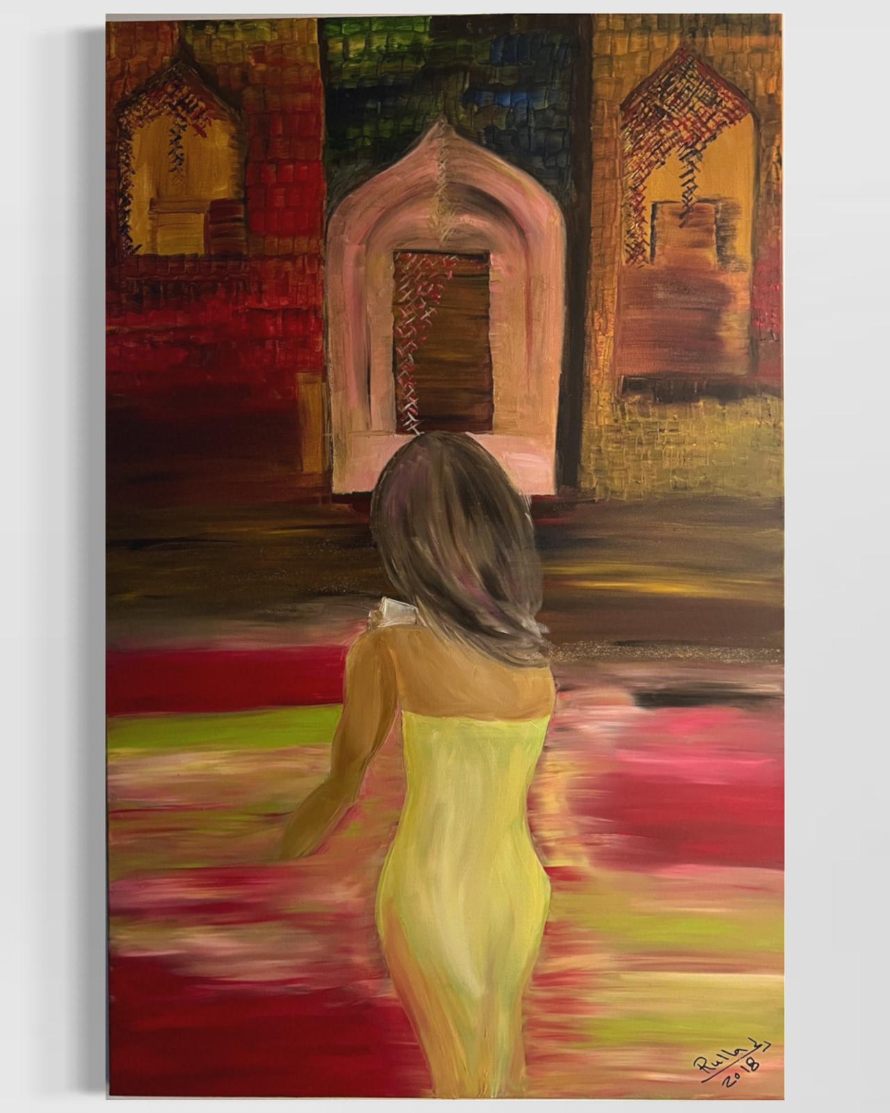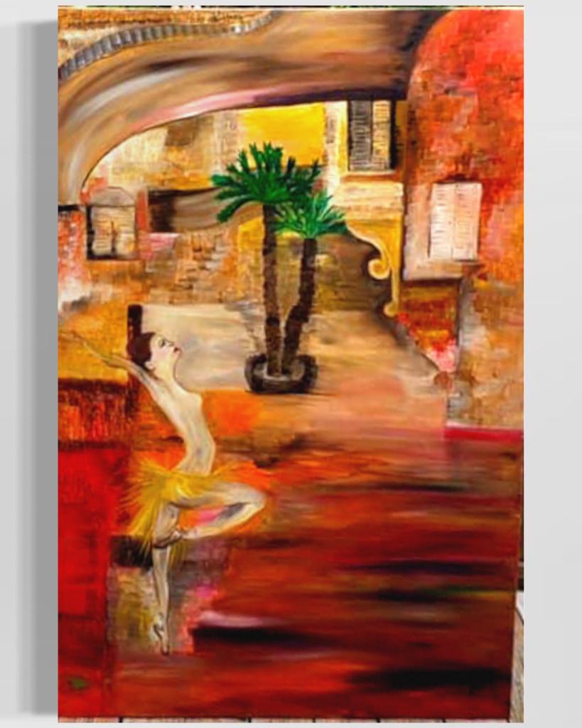 رلى: هذه اللوحة تشير الى أن الوقت يمضي قدما بدون إذن. يمكن للمدن القديمة ويمكن للمشاهد أن يرى بسهولة في لوحة "راقصة الباليه Ballerina" الملمس الغني للتاريخ في قالب المباني، وأن أقول للمتلقي أمام هذه اللوحة: لا تنخدع يا عزيزي، فقد مضى الوقت وظهرت الفتيات الجريئات اللواتي يرقصن بطريقة فنية، ويطالبن بأن تتحرر ارواحهن. ذات مرة لم تكن فتاة صغيرة تحلم ابدا بان تكون راقصة بالية ولا بامتلاك مدرسة لتعليم الفتيات رقص الباليه. وذلك حتى اليوم الذي تجرأت فيه فتاة ووقفت منتصبة القامة وكسرت المعتاد، نظرت الى وجهها بابتسامة وتمنيت ان أكون بشجاعتها ومكانها. لوحة راقصة البالية كرست لها ولكل الصبايا الشجاعات اللواتي يكسرن الاسقف الزجاجية كل يوم لمستقبل أفضل.