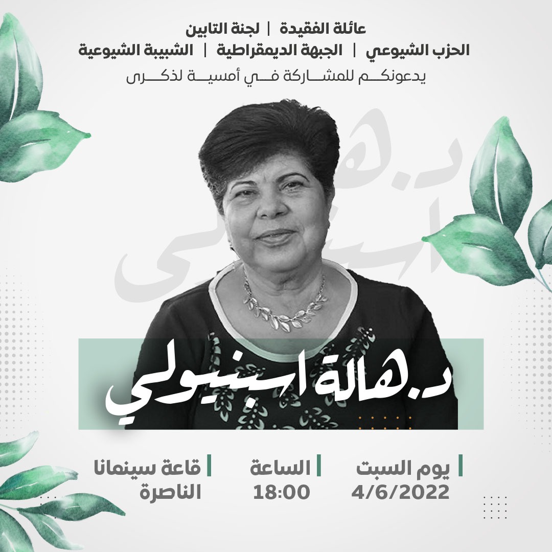 اهلا أعلنت لجنة تأبين د. هالة إسبنيولي أنها أنهت التحضيرات لحفل التأبين والذي سيعقد ذلك مساء يوم الموافق السبت 4.6.2022 الساعة السادسة بقاعة سينمانا في مدينة الناصرة. ولدت د. هالة إسبنيولي في مدينة الناصرة عام 1951 وعملت في الحقل التربوي بمجال الاستشارة التربوية وكباحثة في مجال التربية في المجتمع الفلسطيني. وأشغلت في السنوات الأخيرة منصب عضوة إدارة في مركز مساواة ومؤسسة حضانات الناصرة "مركز الطفولة" وعضوة إدارة في صندوق مسيرة لدعم الاشخاص مع إعاقة وفي جمعية الثقافة والفنون -فرقة موال ونائبة سابقة لعميد كلية دار المعلمين حيفا. ترعرعت د. هاله في مدينة الناصرة وحصلت على بكالوريوس في اللغة العربية وعلم النفس من جامعة حيفا وبعد ذلك حصلت على الماجستير في الاستشارة التربوية والنفسية من جامعة حيفا أيضًا، وعلى الدكتوراة في الاستشارة التربوية لاحقًا من جامعة بار ايلان. بعد حصولها على الدكتوراة، عملت كمحاضرة في الكلية العربية للتربية (دار المعلمين) في حيفا وتسلمت عدة مناصب من بينها نائبة عميد الكلية. كما شغلت إسبنيولي منصب رئيسة لجنة متابعة قضايا التعليم ومستشارة للتربية في وزارة التربية والتعليم. لها عدة مؤلفات في مجالي التربية وعلم النفس من بينها كتاب «خفايا الأمثال» حيث تحلل فيه إسبنيولي الأمثال العربية من منظور نفسي اجتماعي وتاريخي و"مهارات الاتصال" و "دليل التدريب على مهارات الاتصال" و"صور عائلية" بالإضافة الى كتابة وترجمة قصص للأطفال. خصصت القسط الأكبر من أبحاثها لدراسة الفجوات التربوية بين الأنظمة التعليمية في المجتمع العربي واليهودي. ورافقت نضالات السلطات المحلية العربية لتحصيل ميزانيات لبناء الغرف التدريسية وتحسين مناهج التعليم العربي والاستثمار في طواقم التدريس وبادرت لعدة مشاريع لتعزيز الهوية الفلسطينية في برامج التعليم، كما أسست المجلس التربوي العربي الذي يهتم بالقضايا التربوية، وأنشأت مشروع التربية للهوية ضمن نشاطها في لجنة متابعة قضايا التعليم العربي وشغلت بالسابق عضوية ادارة مركز عدالة. ولقد تطوعت د. هالة بتأسيس ومرافقة عدد كبير من المبادرات التربوية والحقوقية، بينها مركز مساواة، و"مركز الطفولة-مؤسسة حضانات الناصرة"، "مركز دراسات" وغيرها، دون مقابل. إلى جانب عملها كمستشارة تربوية وباحثة ومحاضرة. ساهمت في تطوير المؤسسات الاهلية الفلسطينية والنسوية ورافقت مراحل بناء عدد كبير من المؤسسات وقدمت مشورتها ومعرفتها وعلاقاتها لبناء ومأسسة العمل الأهلي التربوي والحقوقي. نفتخر بما تركته لنا من أبحاث وأوراق عمل ومساهمات تربوية مهمة. وقد تشكلت لجنة خاصة لنشر إرث د. هالة إسبنيولي وتخليد ذكراها مؤلفة من عائلتها، أصدقاء وصديقات الفقيدة، الجبهة الديمقراطية – الناصرة، الحزب الشيوعي – الناصرة، الشبيبة الشيوعية – الناصرة، كتلة الجبهة في نقابة المعلمين، لجنة الإغاثة الشعبية لدعم الأهل في المناطق المحتلة – الناصرة، والمؤسسات والجمعيات التالية اسمائهم: مركز الطفولة – مؤسسة حضانات الناصرة، لجنة متابعة التعليم، مركز مساواة، صندوق ومؤسسة مسيرة لدعم ذوي الإعاقات في المجتمع العربي، دارة حنان، جمعية الناصرة للفنون – موال، عدالة، جمعية حقوق المواطن، الكلية العربية للتربية - دار المعلمين، جمعية الوفاء والأمل النسائية الخيرية- باقة الغربية (صندوق الحاجة رقية بيادسة لدعم الطلاب الجامعيين العرب)، امرأة لامرأة (ايشا لايشاه) – المركز النسوي حيفا، نساء الجولان السوري المحتل، مركز الدراسات النسوية -القدس المحتلة، جمعية نساء اللقية – النقب، اجيك النقب، معا - اتحاد الجمعيات النسائية في النقب، جمعية نساء ضد العنف، حركة النساء الديمقراطيات، جمعية الزهراء- سخنين، كيان- تنظيم نسوي. لتفاصيل إضافية يمكن التواصل مع: نبيله إسبنيولي – أخت الفقيدة 5581709-050 ومع أعضاء لجنة التأبين امال شحادة 2473298-052 جعفر فرح6877212 -054