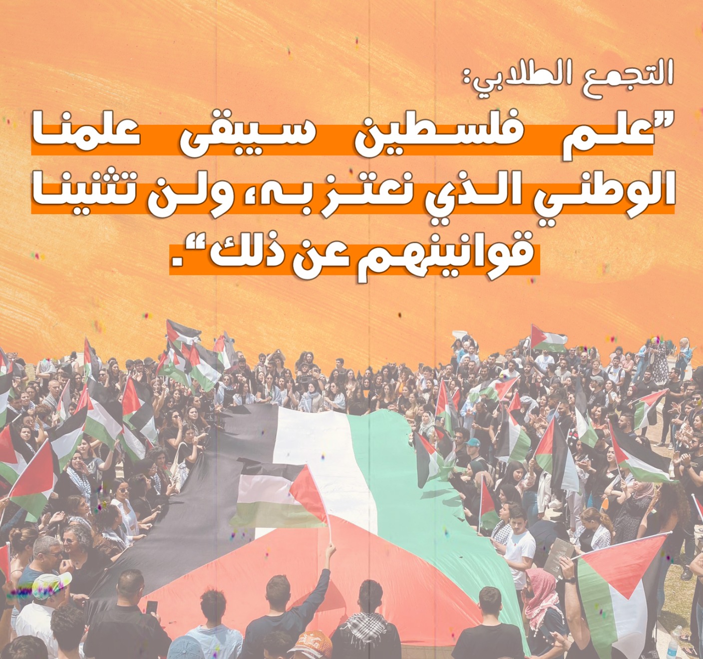 اهلا- التجمع الطلابي التجمّع الطلابيّ: علم فلسطين سيبقى علمنا الوطني الذي نعتز به ولن تثنينا قوانينهم عن ذلك